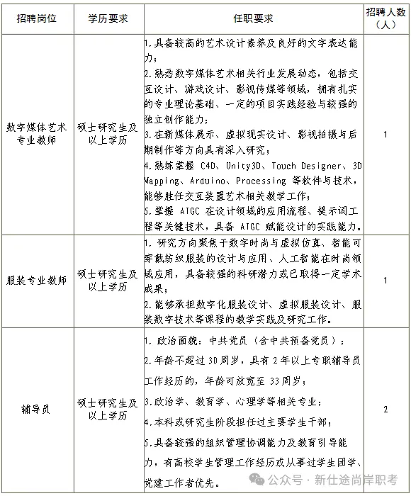 学校设置美术学、设计学2个一级学科,涵盖10个本科专业,其中有绘画、雕塑、书法学、中国画4个美术学类专业,有视觉传达设计、环境设计、服装与服饰设计、产品设计、数字媒体艺术、工艺美术6个设计学类专业。根据我校发展需要,现面向社会公开招聘,具体要求如下: