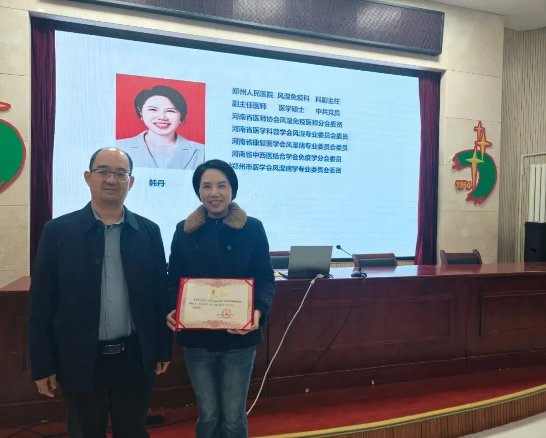 讲座伊始,校长闫凯为郑州市人民医院风湿免疫科副主任医师韩丹颁发聘书,正式聘请其担任学校健康副校长。健康是师生成长的基石,聘任健康副校长是学校深化健康管理、助力学校完善健康服务体系的重要举措。