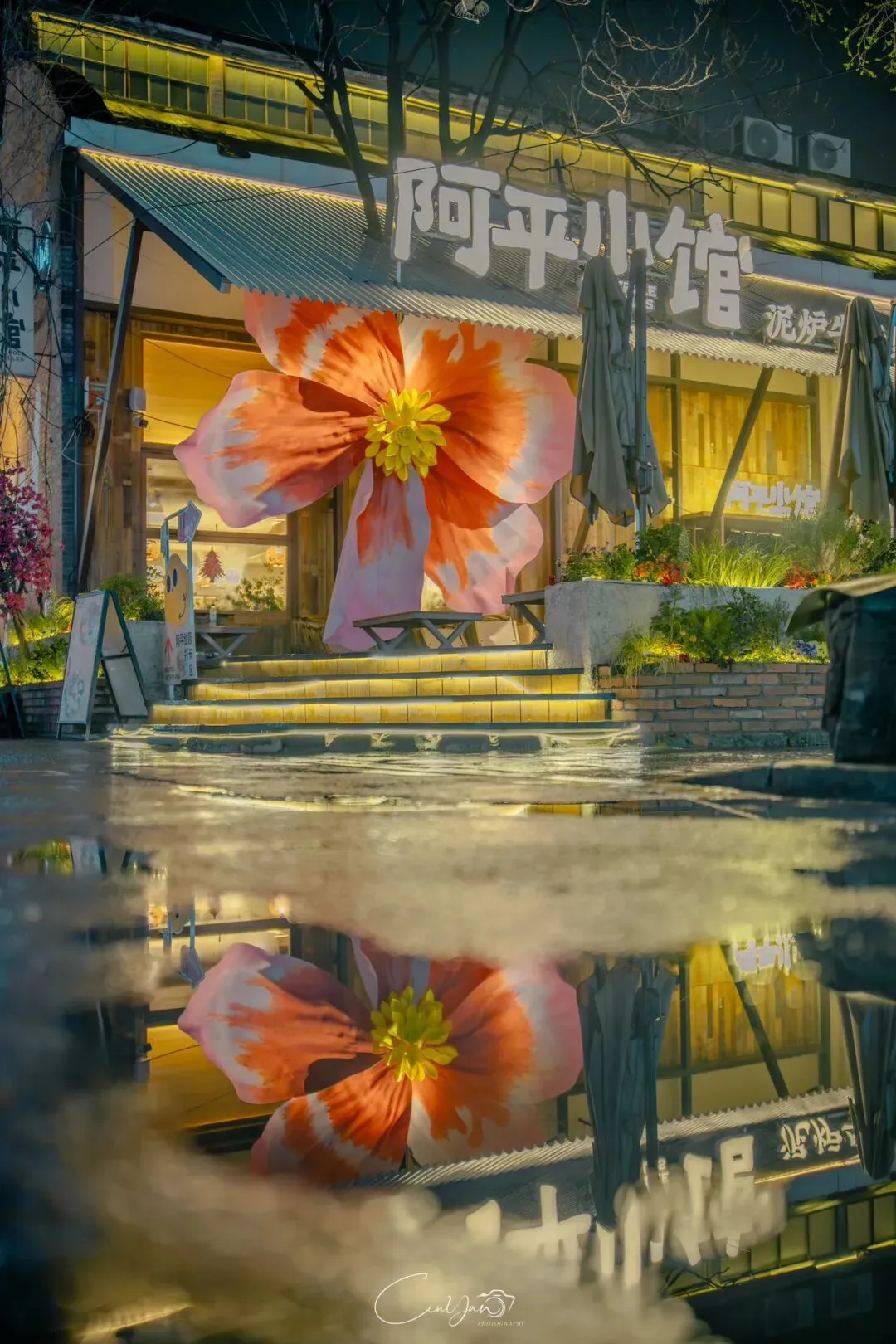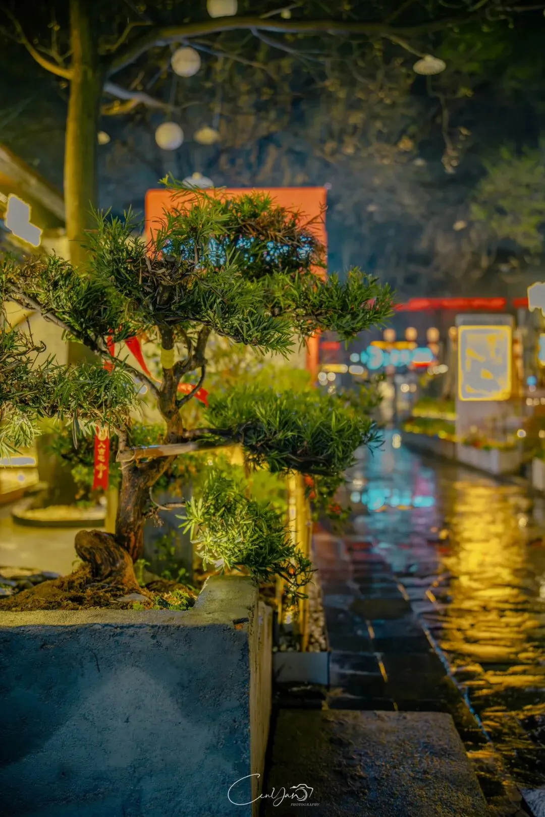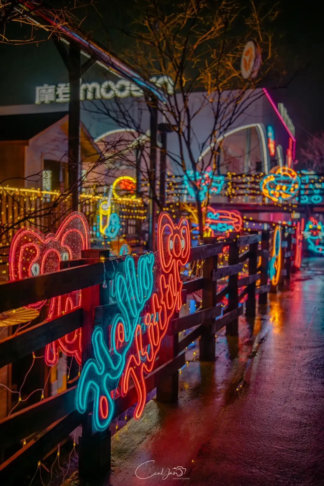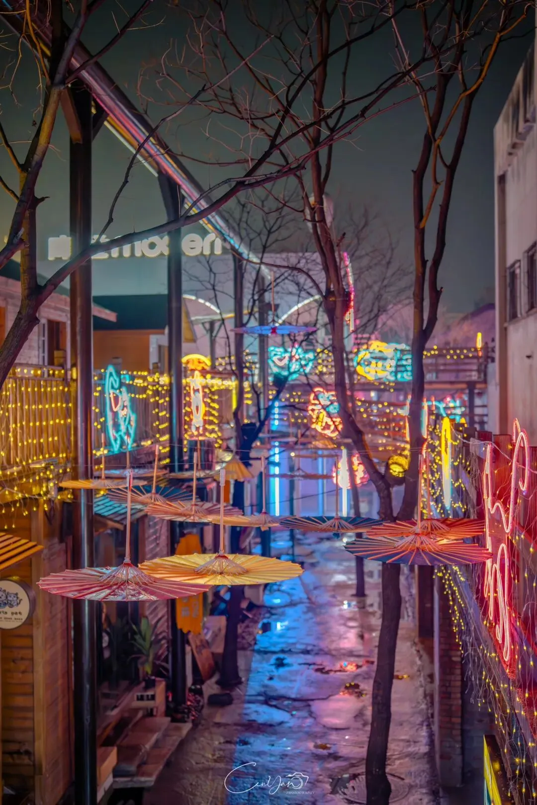 对我而言,摄影不只是记录好看的画面,更是留住一段情绪、一段故事、一段别人可能忽略的时光。雨夜的油化厂,就是这样一个地方:它新潮、好看、出片,但它骨子里,依然是那个1952年诞生、默默陪伴郑州长大的老工厂。当我收拾器材准备离开时,最后看了一眼这片被雨水浸润的园区。远处的法桐在风里轻晃,近处的灯笼在水面摇曳,积水里的霓虹依旧在流动。我知道,这些照片里的光影,终会随着时间淡去,但那份从中州肥皂到霓虹街巷的记忆,会一直留在郑州人的心里。它是老厂房的余温,是新烟火的跳动,是属于这座城市最温柔的时光回响。