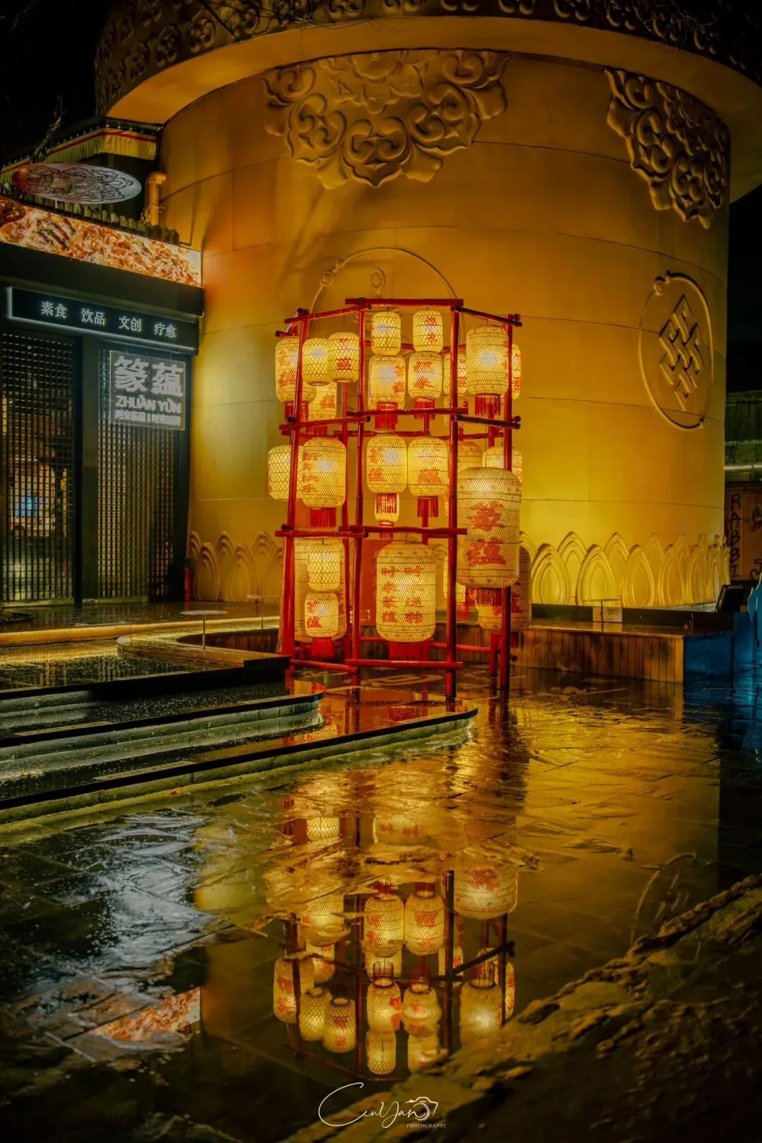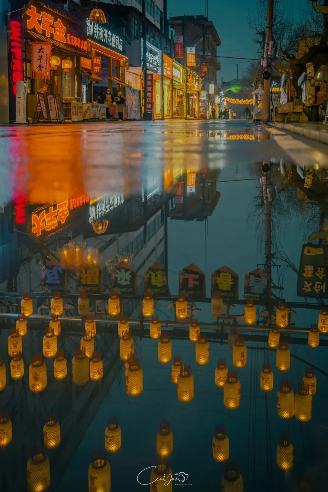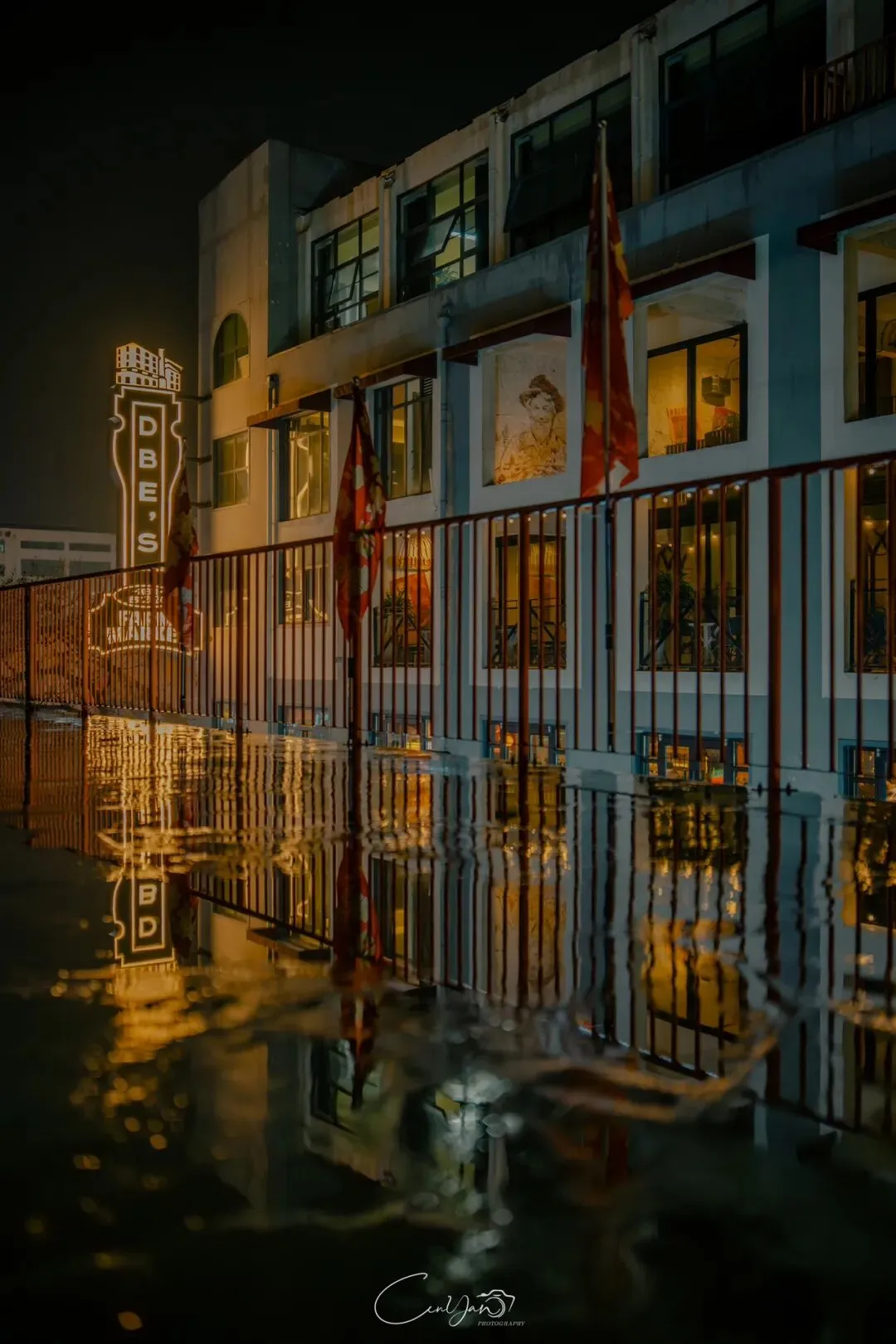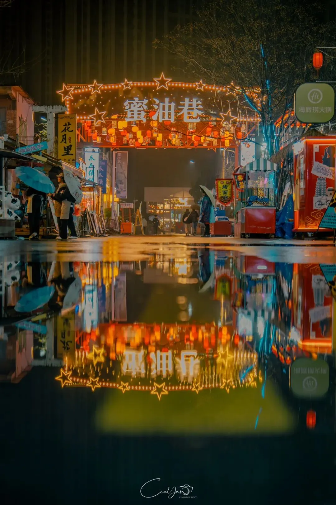 对我而言,摄影不只是记录好看的画面,更是留住一段情绪、一段故事、一段别人可能忽略的时光。雨夜的油化厂,就是这样一个地方:它新潮、好看、出片,但它骨子里,依然是那个1952年诞生、默默陪伴郑州长大的老工厂。当我收拾器材准备离开时,最后看了一眼这片被雨水浸润的园区。远处的法桐在风里轻晃,近处的灯笼在水面摇曳,积水里的霓虹依旧在流动。我知道,这些照片里的光影,终会随着时间淡去,但那份从中州肥皂到霓虹街巷的记忆,会一直留在郑州人的心里。它是老厂房的余温,是新烟火的跳动,是属于这座城市最温柔的时光回响。