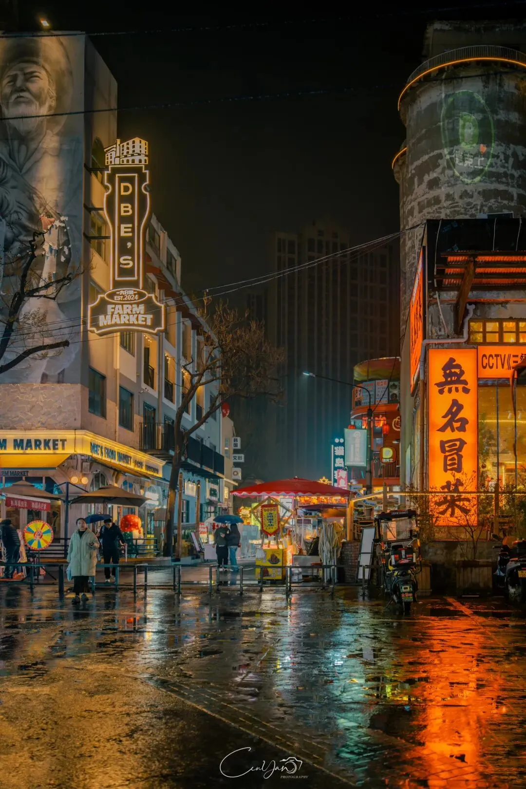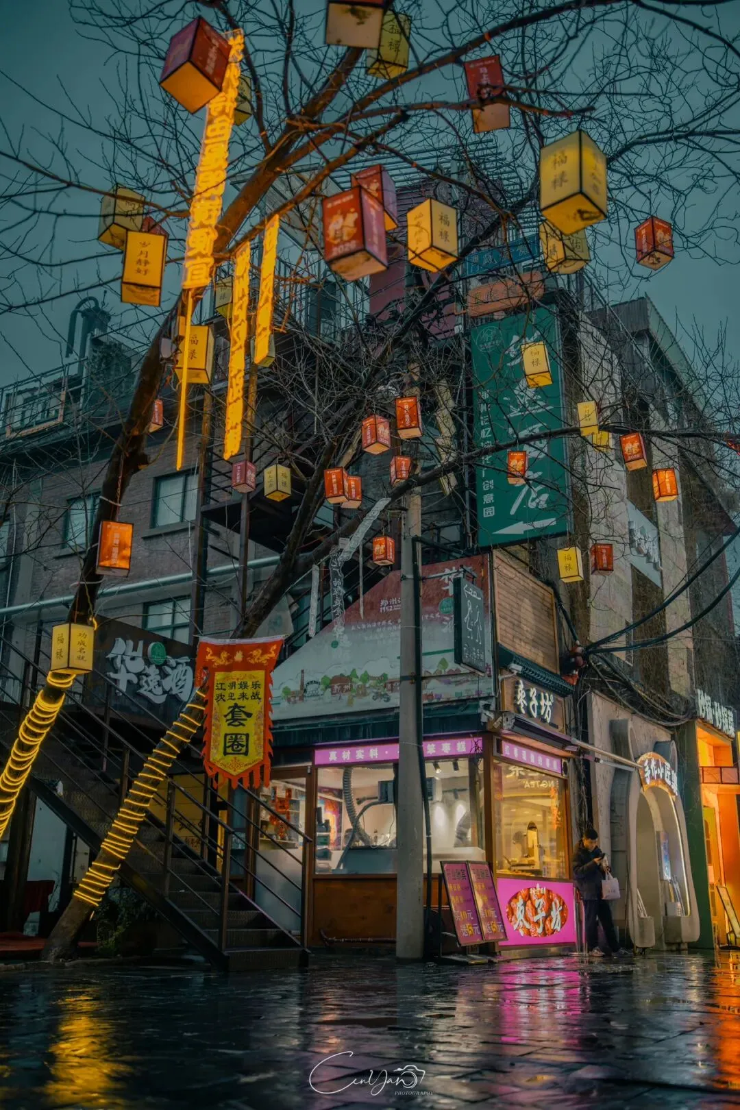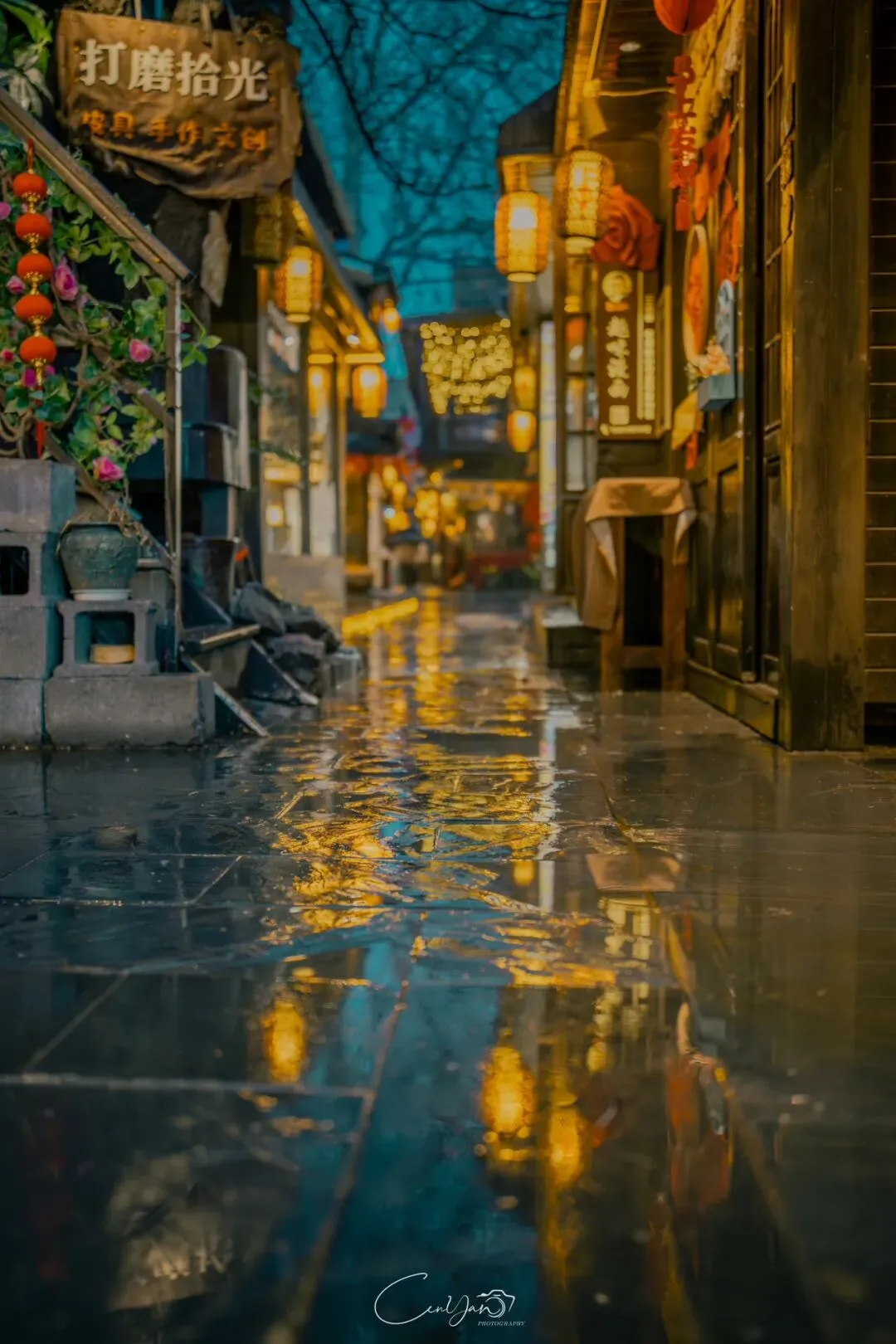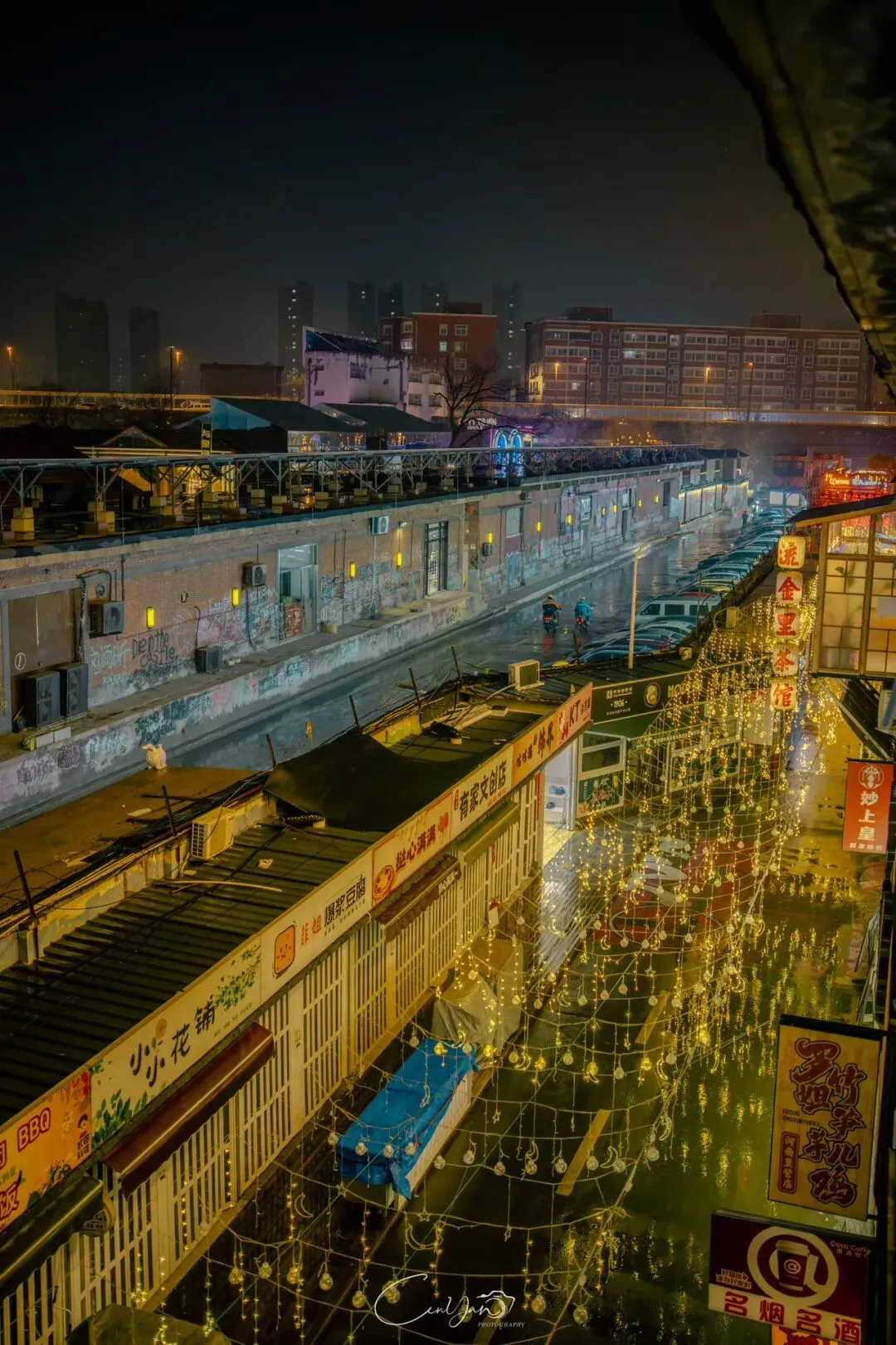 对我而言,摄影不只是记录好看的画面,更是留住一段情绪、一段故事、一段别人可能忽略的时光。雨夜的油化厂,就是这样一个地方:它新潮、好看、出片,但它骨子里,依然是那个1952年诞生、默默陪伴郑州长大的老工厂。当我收拾器材准备离开时,最后看了一眼这片被雨水浸润的园区。远处的法桐在风里轻晃,近处的灯笼在水面摇曳,积水里的霓虹依旧在流动。我知道,这些照片里的光影,终会随着时间淡去,但那份从中州肥皂到霓虹街巷的记忆,会一直留在郑州人的心里。它是老厂房的余温,是新烟火的跳动,是属于这座城市最温柔的时光回响。