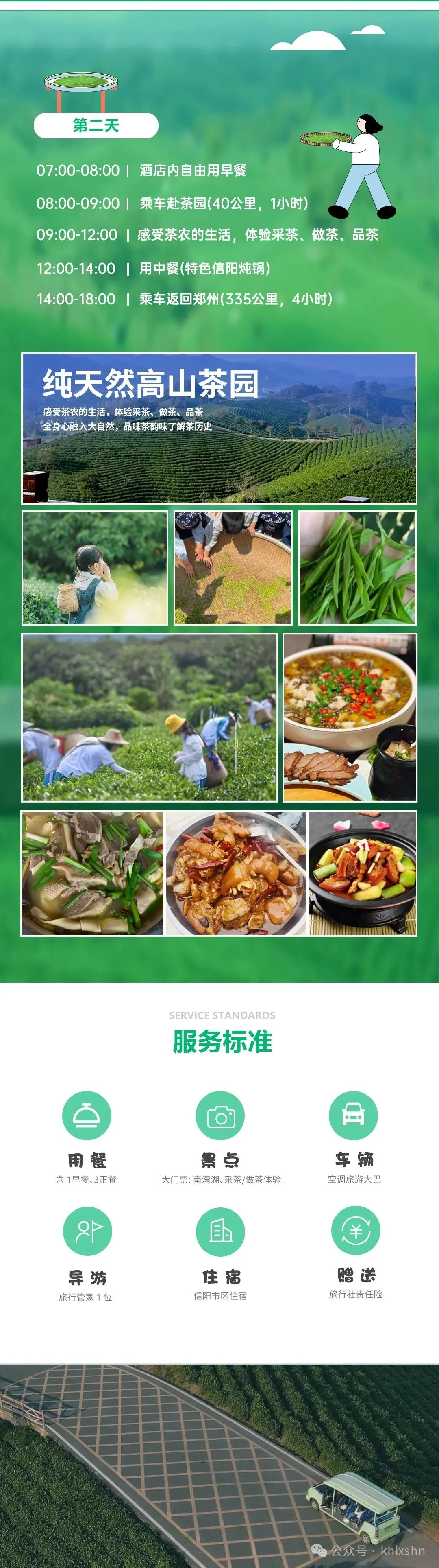 这次猪猪来到的是「 文新茶叶生态观光园」 ,这里汇集了万亩有机茶园,信阳毛尖发源地、观日台等原生态自然景观、全程约500米,可供游客体茶叶采摘、信阳毛尖手工炒茶技艺,充分享受乡村生活的无限乐趣。
