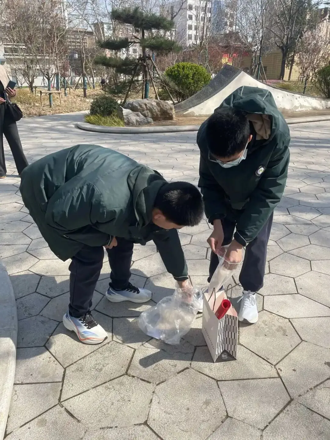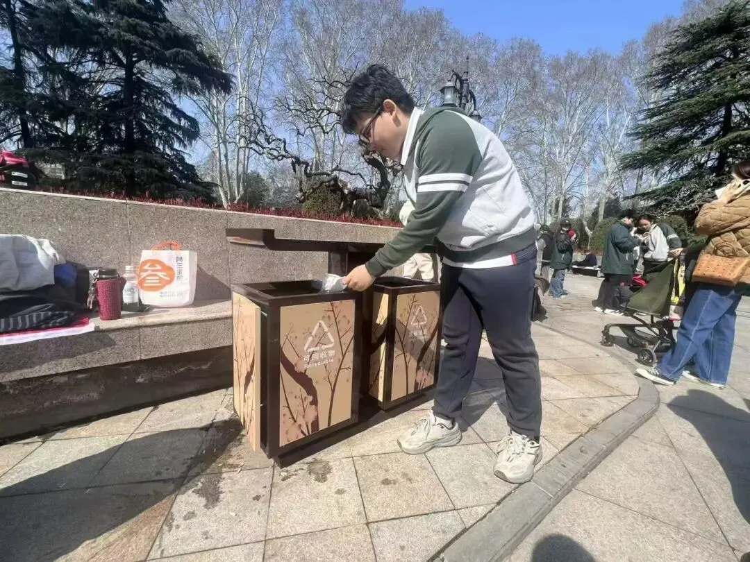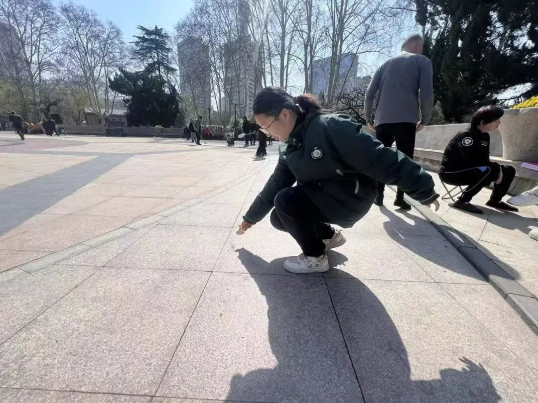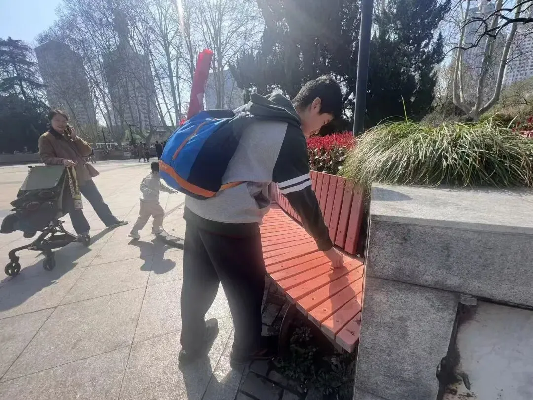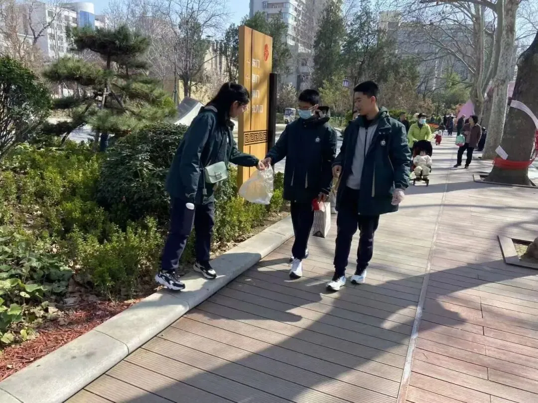 环境清洁守护是本次系列活动的核心内容,全力开展精细化清洁志愿行动。在郑州市人民公园,园内游人如织,草坪、步道、花坛间散落着烟蒂、纸屑、塑料瓶等杂物,同学们身着整齐校服,手持垃圾夹、垃圾袋,不怕脏、不怕累,沿着休闲广场、花坛草坪、林间小道展开全方位清理,哪怕是草丛深处的细小杂物、墙角缝隙的隐蔽垃圾,都被逐一捡拾收纳,弯腰劳作的身影与春日美景相映成趣,认真负责的态度收获了过往市民的连连称赞。