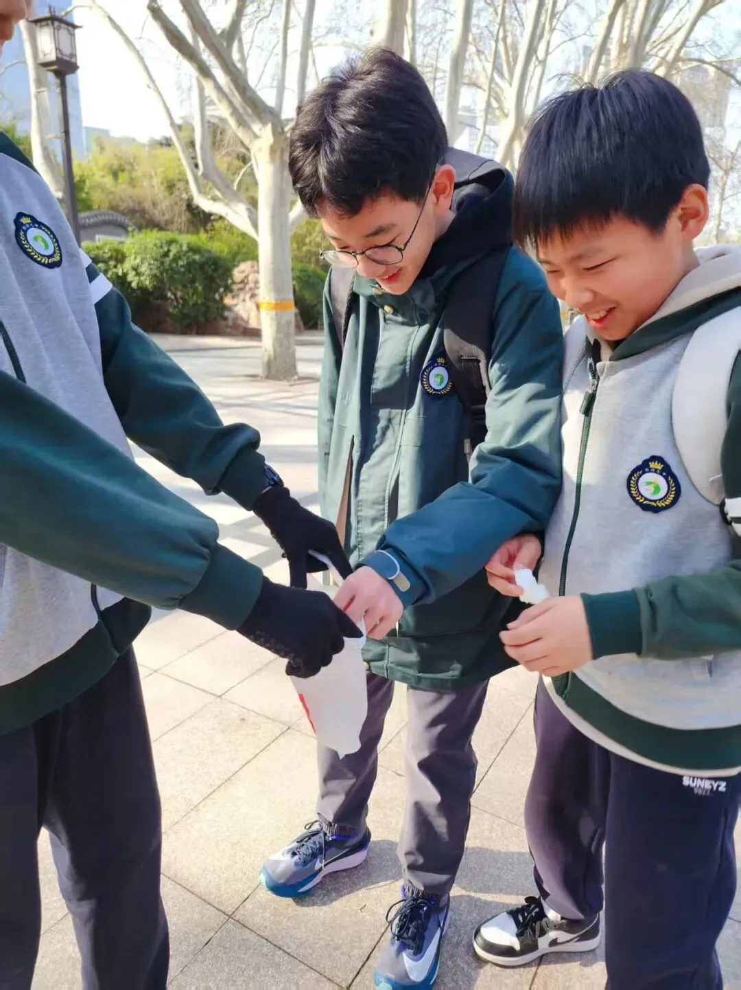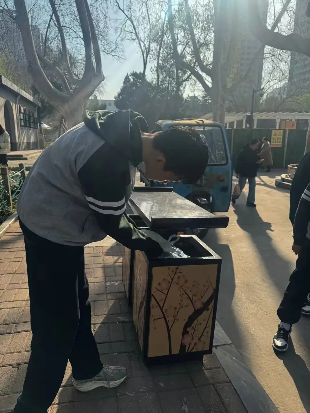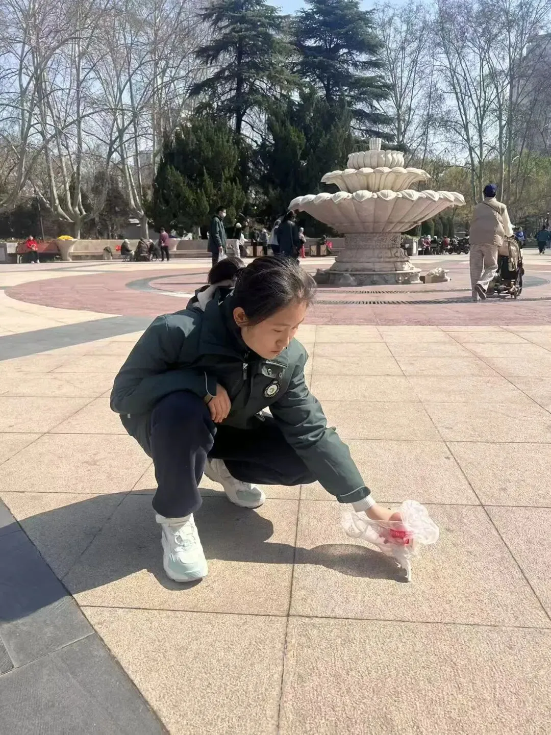 环境清洁守护是本次系列活动的核心内容,全力开展精细化清洁志愿行动。在郑州市人民公园,园内游人如织,草坪、步道、花坛间散落着烟蒂、纸屑、塑料瓶等杂物,同学们身着整齐校服,手持垃圾夹、垃圾袋,不怕脏、不怕累,沿着休闲广场、花坛草坪、林间小道展开全方位清理,哪怕是草丛深处的细小杂物、墙角缝隙的隐蔽垃圾,都被逐一捡拾收纳,弯腰劳作的身影与春日美景相映成趣,认真负责的态度收获了过往市民的连连称赞。
