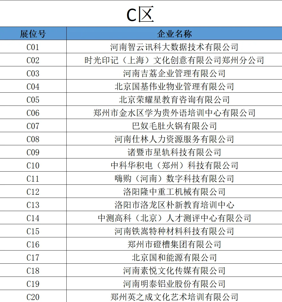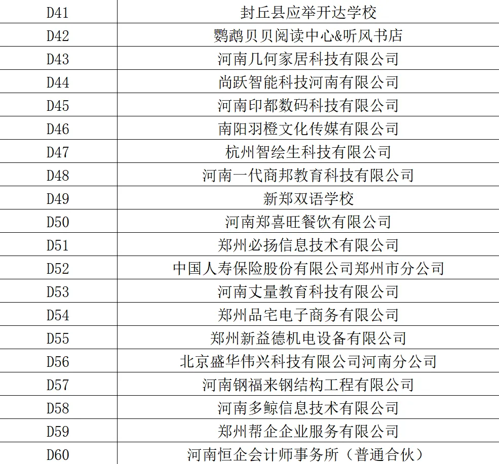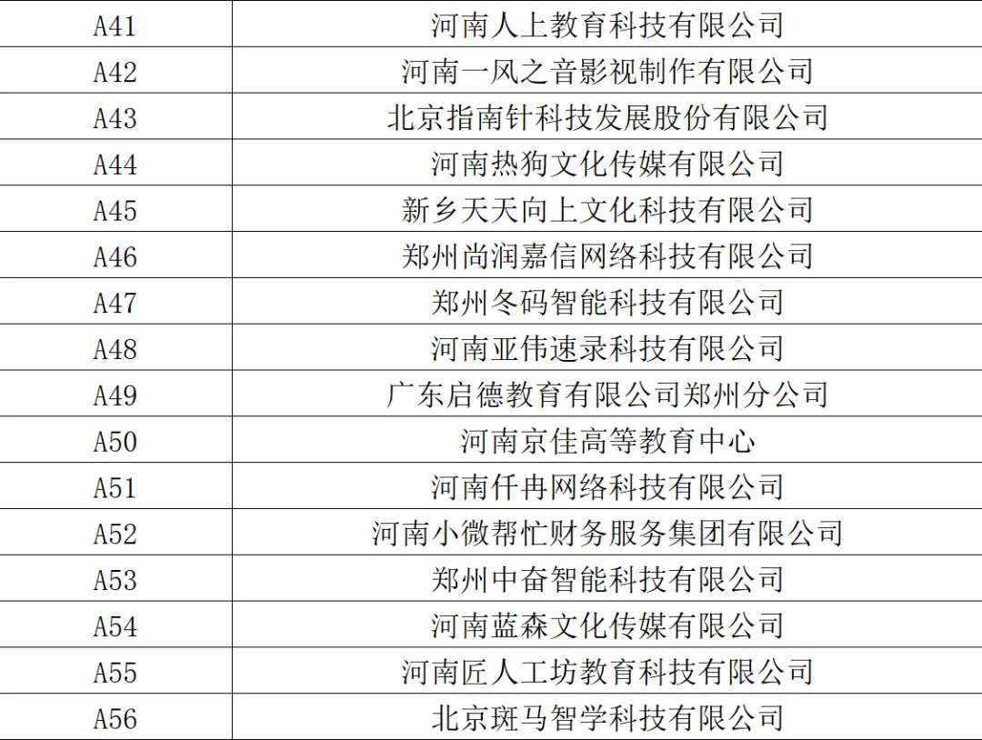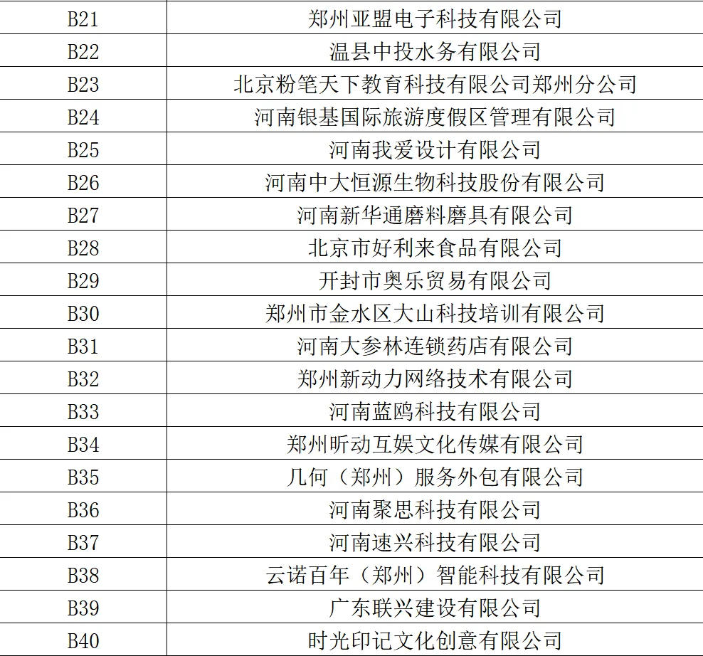 春季双选会部分参会企业展位信息