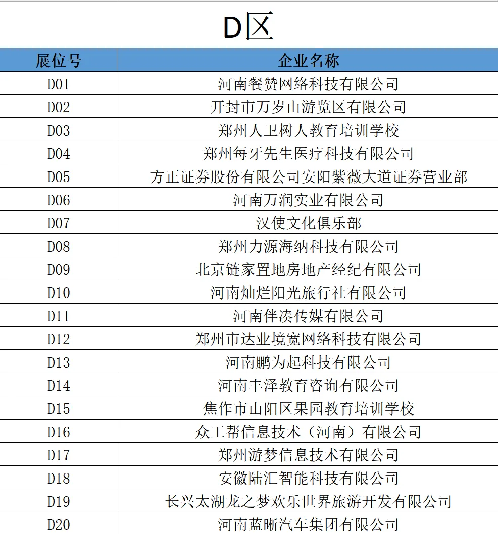 参会企业展位信息