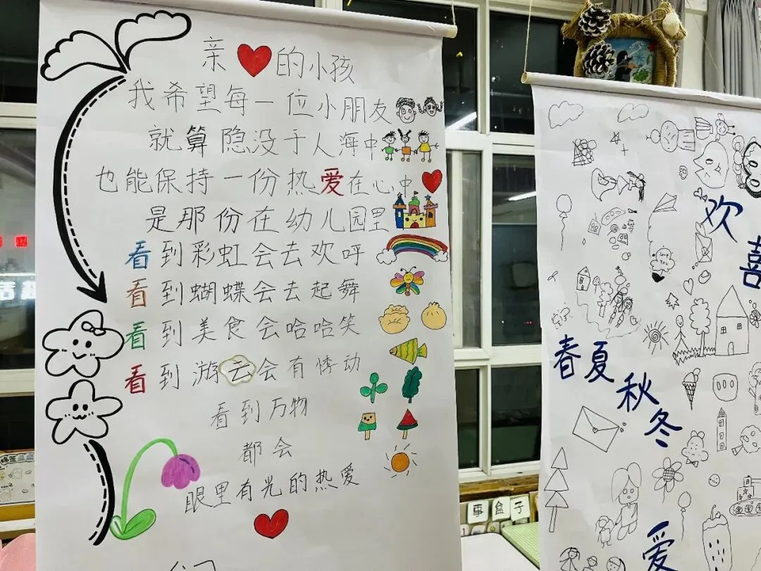 温馨的签到台、孩子们亲手绘制的“邀请函”、用心制作的幼儿成长视频……每一处细节,都藏着老师们满满的爱意与用心。窗明几净的教室里,桌椅摆放整齐,PPT一页页反复打磨,只为让这场家长会更有温度、更有深度。