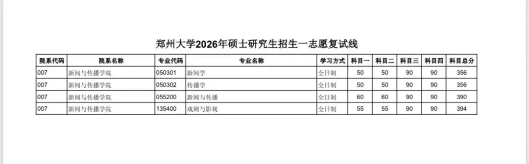 【郑州大学2026年硕士研究生招生复试分数线(陆续公布中...)】