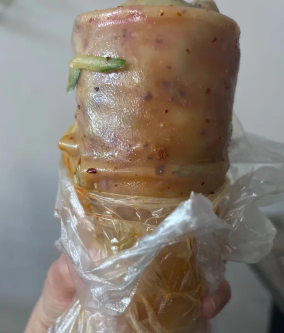 壮馍做法不复杂,和好的面擀开,裹上调过味的肉馅,再折叠、压实,下鏊子慢火煎。关键不是猛火,而是耐心。外壳起酥,里头的肉汁才留得住。