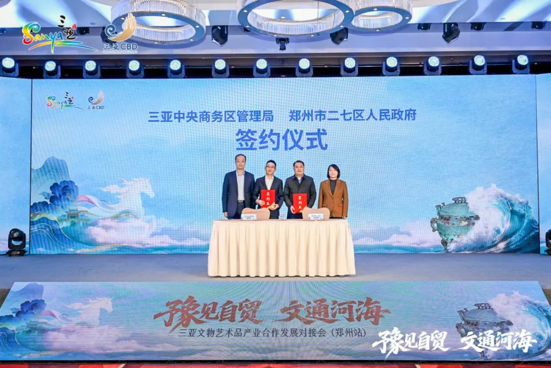 3月23日,由三亚中央商务区管理局主办的“豫见自贸·文通河海”三亚文物艺术品产业合作发展对接会(郑州站)在郑州市二七区举办。活动取得丰硕成果,三亚中央商务区管理局与郑州市二七区人民政府签订合作协议;国家对外文化贸易基地(三亚)与国家文化出口基地(开封片区)签约,实现南北文化贸易出口平台的有效联动;在全场近160余位来自琼豫两地的政府领导、行业专家、文化企业及商协会代表共同见证下,“中原文化贸易出海基地”正式揭牌,成为海南自贸港三亚文物艺术品产业布局中原的重要桥头堡。