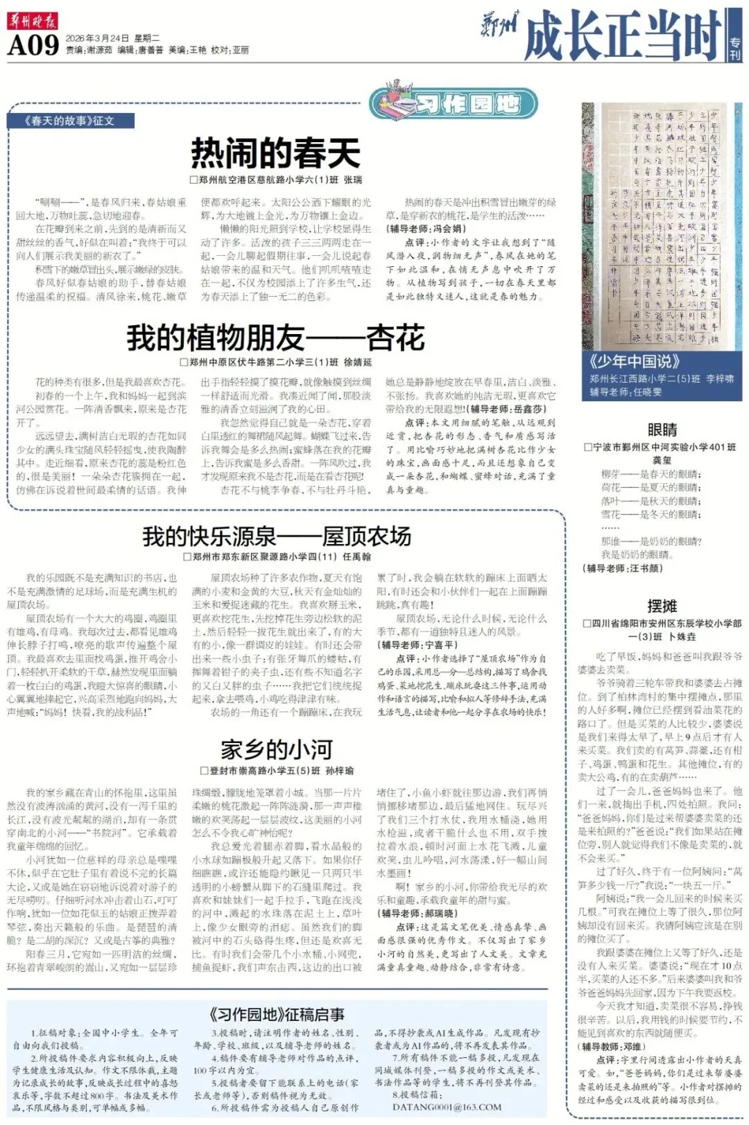 7篇习作在郑州晚报发表,看看都是谁家孩子?