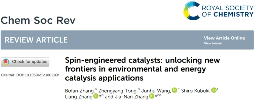 郑州大学张佳楠、江苏科技大学张亮、江苏大学张博凡Chem. Soc. Rev.(IF = 39.3):自旋工程催化剂开拓环境与能源催化的新前沿