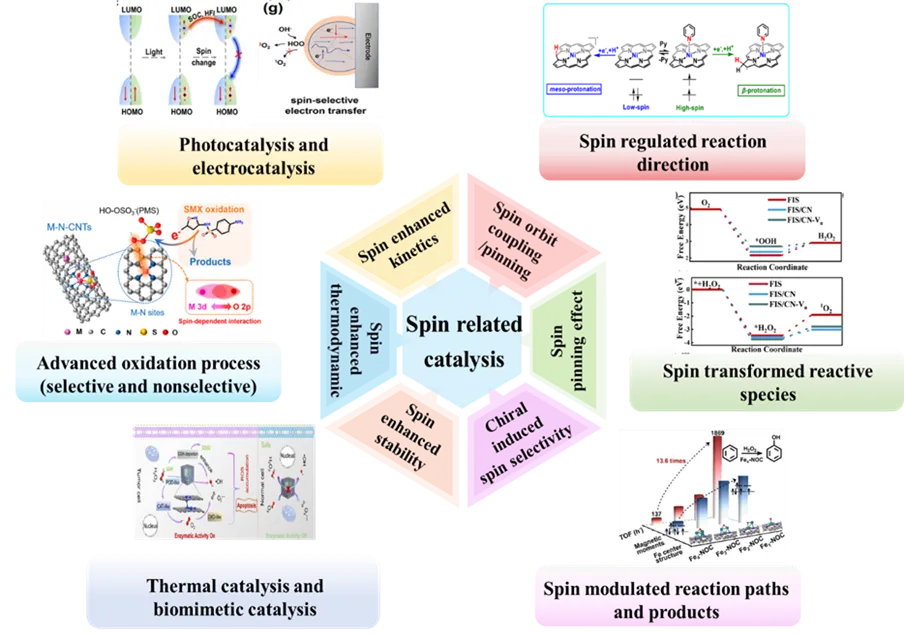 环境催化过程中,催化活性中心的自旋特性与其催化能力、反应路径及反应机理之间存在着深层次的内在耦合关系。自旋态及自旋相关电子结构不仅直接调控反应物的吸附构型与电子转移方式,而且通过改变反应中间体的能级分布与轨道占据状态,系统性地影响反应的热力学驱动力、动力学能垒以及催化位点在反应条件下的结构与价态稳定性。此外,自旋极化、自旋翻转及自旋选择定则的引入,可进一步重塑反应的能量演化路径,实现对反应通道的选择性开启或抑制,从而引导反应朝着特定反应路径和目标产物方向定向演化。自旋调控能够影响电子排布与反应中间体的稳定性,从而优化催化活性和选择性。通过对自旋取向的调节,可以精细化催化剂与反应物之间的相互作用,并揭示新的自旋依赖反应机制。自旋还主导着自旋-轨道耦合、磁化与磁各向异性等关键物理现象,推动着量子力学理解的深化。自旋调控策略可分为两类:外部场调制与内部场调制。该领域面临的挑战与新兴机遇:自旋催化依赖于自旋状态的准确表征,但现有方法(如振动样品磁强计、穆斯堡尔谱和同步辐射技术)的视角有限,易导致不同研究之间的结果不一致;尽管基于自旋的理论已推动了环境催化的发展,但在监测自旋通道和量化自旋效应方面仍存挑战。需要借助原位电子显微镜、同步辐射等先进技术实时追踪自旋态变化。高通量实验与机器学习可用于优化自旋结构并预测催化性能;当前自旋催化领域的核心挑战在于如何控制自旋态,并厘清其与催化性能之间的关联。计算方法虽能指导实验,但对自旋演化过程仍需更精确的调控。未来研究应拓展至更广泛的金属体系,并探索增强自旋效应的途径,特别是利用外磁场调控和自旋轨道耦合效应;优化自旋状态可提升催化剂的稳定性、选择性和活性,从而支撑工业应用。未来的进展有赖于化学、物理和工程等领域的跨学科协作。张佳楠:郑州大学化学学院教授、博士生导师,国家高层次青年人才,英国皇家化学会会士,2022年世界前2%顶尖科学家,中国化学会女委会委员,中国化学会青委会委员。2005年于吉林大学获学士学位,2010年于吉林大学获博士学位(导师:于吉红院士)。2008年-2009年在美国橡树岭国家实验室访问交流,2019年在日本国立综合产业技术研究所(AIST)作访问学者。张亮:博士,现就职于江苏科技大学,主要致力于铁基类芬顿催化材料设计以及原位穆斯堡尔谱的设计开发。2023年于中国科学院大连化学物理研究所获得博士学位,已在Acc. Mater. Res.,Appl. Catal. B:Environ, Chem. Eng. J.,ACS Appl. Mater. Interfaces,Sep. Purif. Technol.,J. Colloid Interface Sci.期刊发表多篇国际期刊 TOP 论文。张博凡:江苏大学环境与安全工程学院副教授,研究生导师。专注于纳米催化剂的开发及在环境与能源催化体系的机制研究;新兴微污染物的氧化与还原强化去除技术以及自旋催化及其在环境和能源领域的应用研究。主持教育部海外人才项目、自然科学基金青年项目,中国博士后面上项目、江苏省科技副总人才、企业横向等项目多项。https://doi.org/10.1039/D5CS00216H