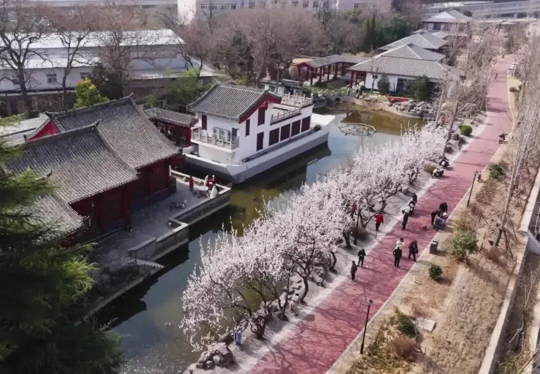 金水河穿嵩山路而过。路西河畔,也就是如今的“隋河宋肆”一带,当年曾是一大片树林,地面光秃秃的,并未像现在这样铺设草坪。路边曾有一栋小红楼,一段时期内楼下形成了热闹的马路市场,这已是20世纪八十年代以后的事了。那时的嵩山路笔直开阔,却并非一路平坦,穿过金水河的路段地势低洼,走到坡底便能看见河水潺潺流淌。透过测绘学院围墙的铁栅栏,能望见金水河沿岸景致宜人,河上横跨着一座座小桥,其中一座桥的造型颇有赵州桥的韵味。粮食学院院内风光秀丽,测绘学院里也有不少红色楼房,只是楼层都不高。金水河以北的嵩山路两侧,法桐枝繁叶茂,树冠如伞盖般展开,行走在街道上,宛如置身绿色长廊,阳光透过枝叶洒落,光影斑驳。
