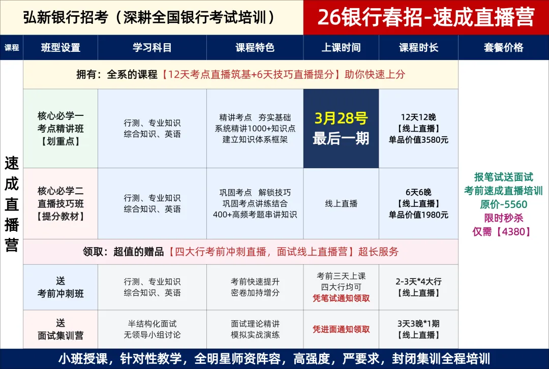 笔试系统学习,赠送四大行考前冲刺+面试集训