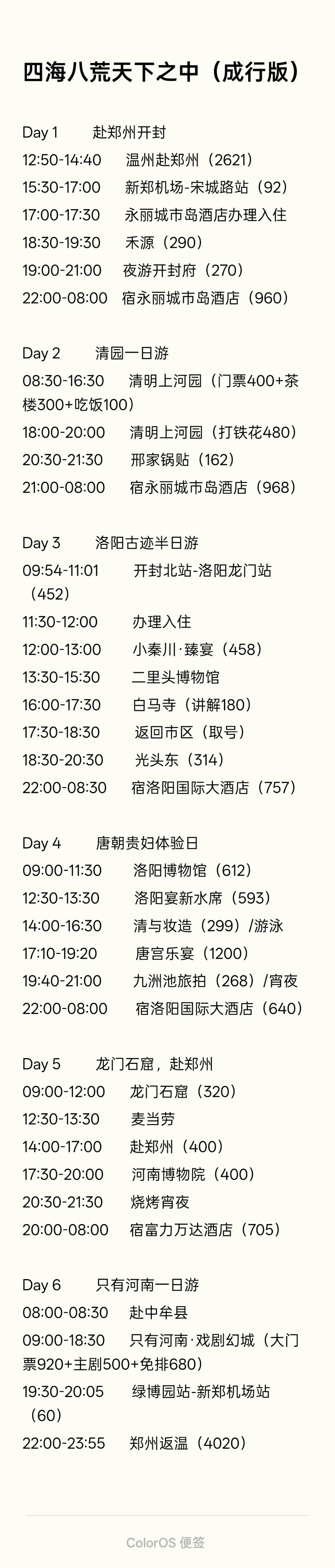 12306的页面上,眼看着11个候补选项逐个落空,现代人知道只能用钞能力了。从洛阳到郑州,我们不得不包一辆车子——滴滴的王总不好意思,师傅提出要走线下,所以我取消了线上的订单。我小心翼翼地试探:“师傅,说好400就400哦,不能中途再加价的嗷。”师傅让我放心,但刚一上车他便提议放弃高速走国道,又让我的心揪了起来,虽然他解释说走国道不容易堵,但我们还是满心戒备。直到车子上了传说中的“国道”,我才明白:“噢,原来河南的国道修得这么好,简直是通天的大路,九千九百九十九噢!”车行至郑州郊区时,下起了大雨,我担心师傅会以天气不好回程受影响为由向我们多收取一些费用,也确实做好了他提我就给的准备,但没想到司机师傅全程无怨言,甚至好心地多送我们一程到了河南博物院。感动,当初那些个说河南人坏话的,你们都是从哪儿听来的,我接触到的,个个都真诚善良啊!