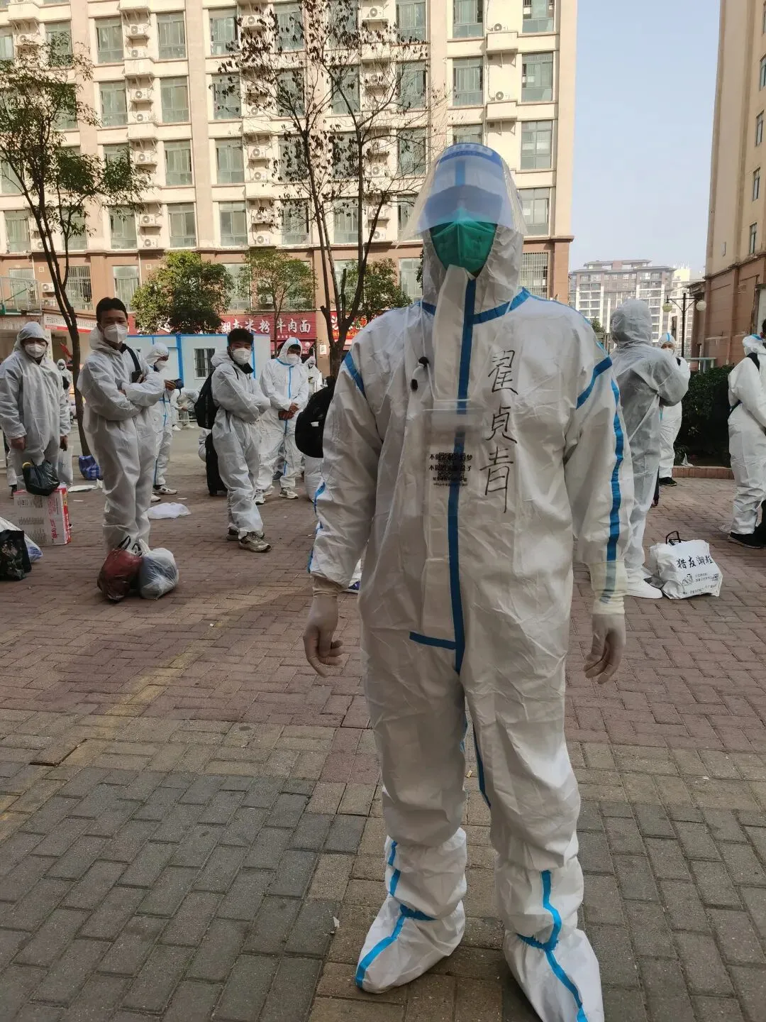 现在,他继续负责统筹工作,天气转凉,他们十余位志愿者近期刚刚协调好物资,完成区域内员工的被子发放工作。除了突发情况的及时处理,他们也要做好员工安抚工作,缓和员工情绪,减少心理压力。曹晓博认为,“大家都是基层工作者,能帮一位是一位”。现在,他仍和其他志愿者一同为负责区域内的员工提供饮食、药物等物资服务,作为处理突发与异常情况的防线,与同仁一起,共抵防疫路上的风雨。