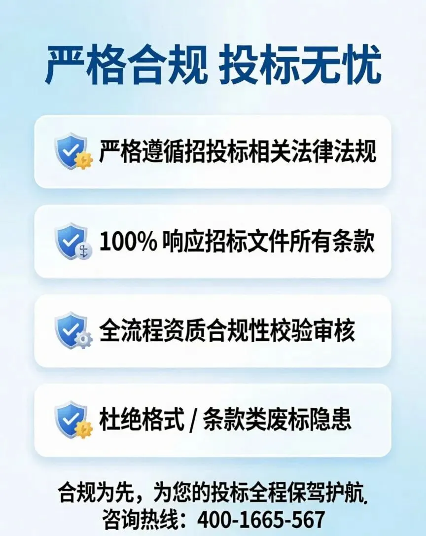 90% 的投标失利,不是企业实力不行,而是没打通「标书合规风险前置排查 + 全流程规范编制」的完整闭环。想要规避废标风险,既要吃透本地评审规则,更要做好标书全流程合规管控,双管齐下才能提升投标竞争力。