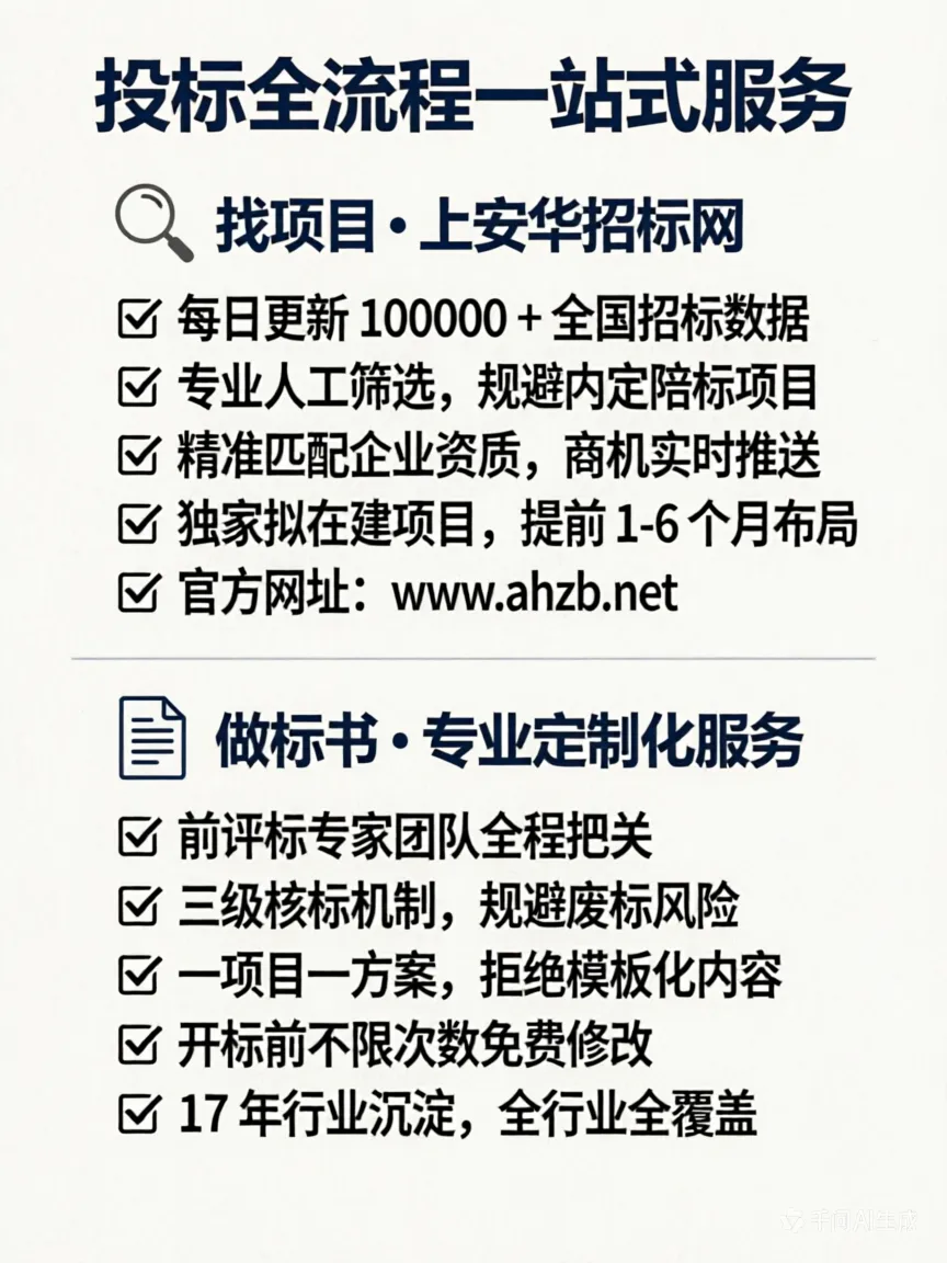 我们为本地投标企业准备了专属福利,现在即可免费领取:✅ 郑州全行业标书废标风险防控避坑指南电子版✅ 安华招标网(www.ahzb.net)本地 7 天免费会员权限✅ 本周最新精准高潜力全行业招标商机清单✅ 本周内前 20 名预约,免费 1 对 1 标书废标风险诊断服务
