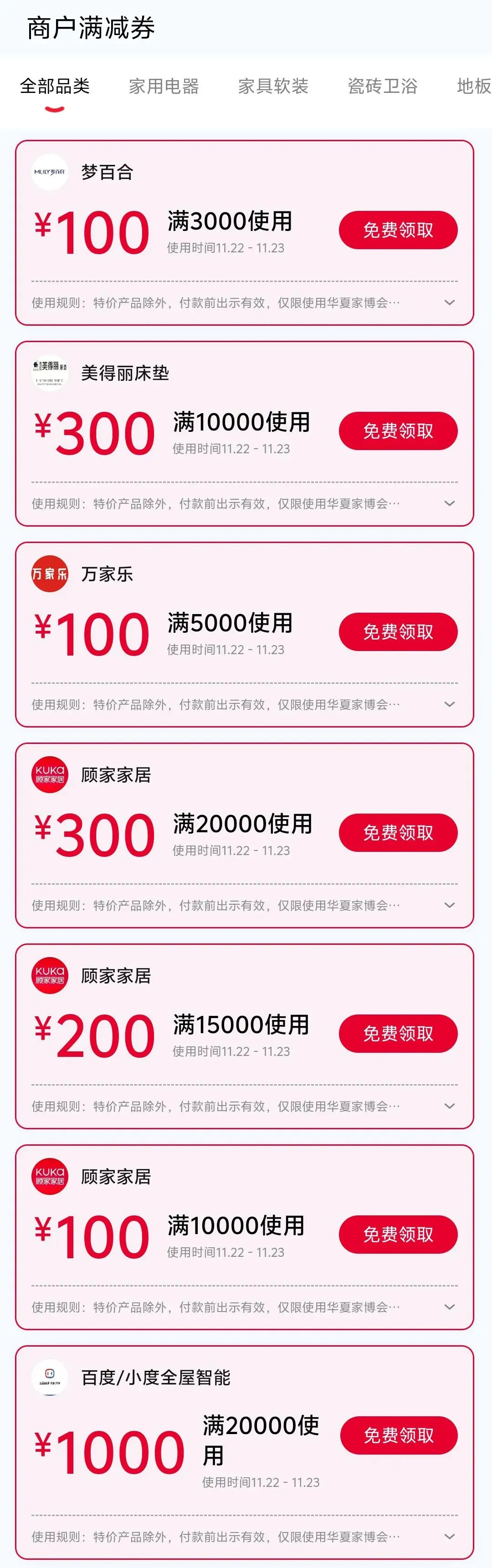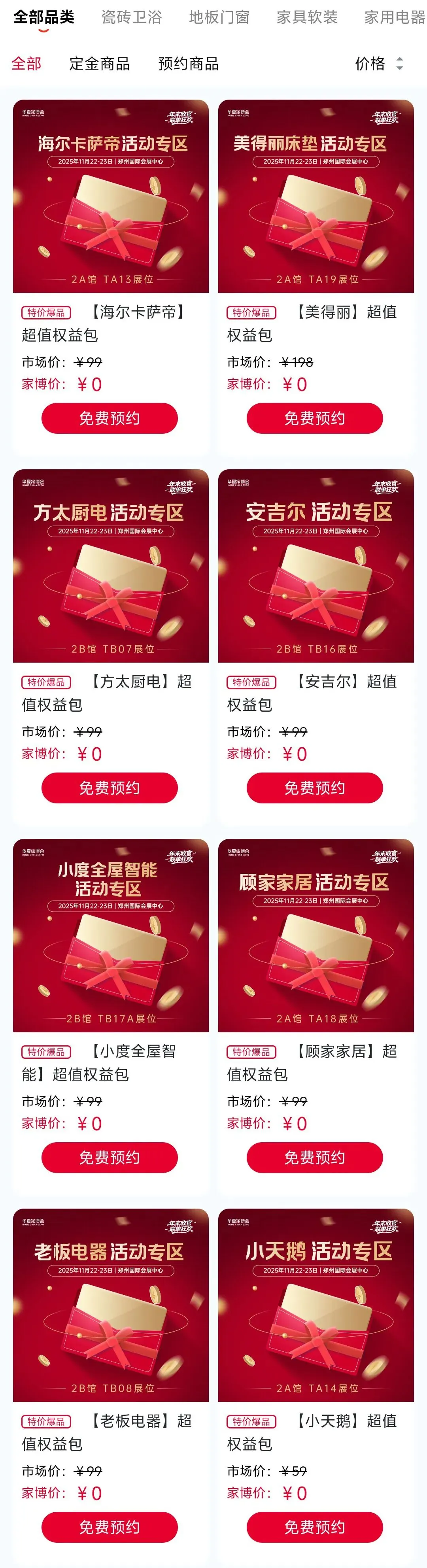 温馨提示:以上仅展现部分免费领取品牌,更多品牌索票后“华夏家博会”小程序查看预约。