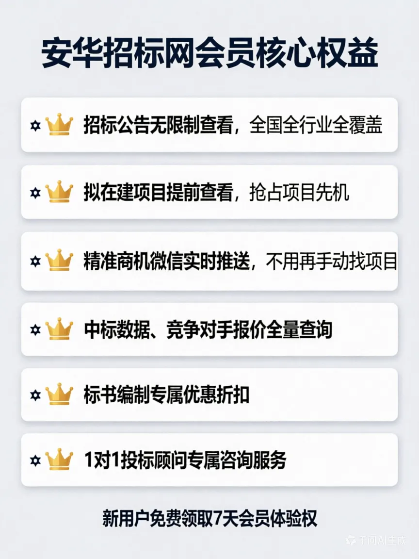 我们为本地投标企业准备了专属福利,现在即可免费领取:✅ 全行业招投标标书合规避坑指南电子版✅ 安华招标网(www.ahzb.net)本地 7 天免费会员权限✅ 本周最新精准高潜力全行业招标商机清单✅ 本周内前 20 名预约,免费 1 对 1 标书诊断服务 + 项目竞标风险评估