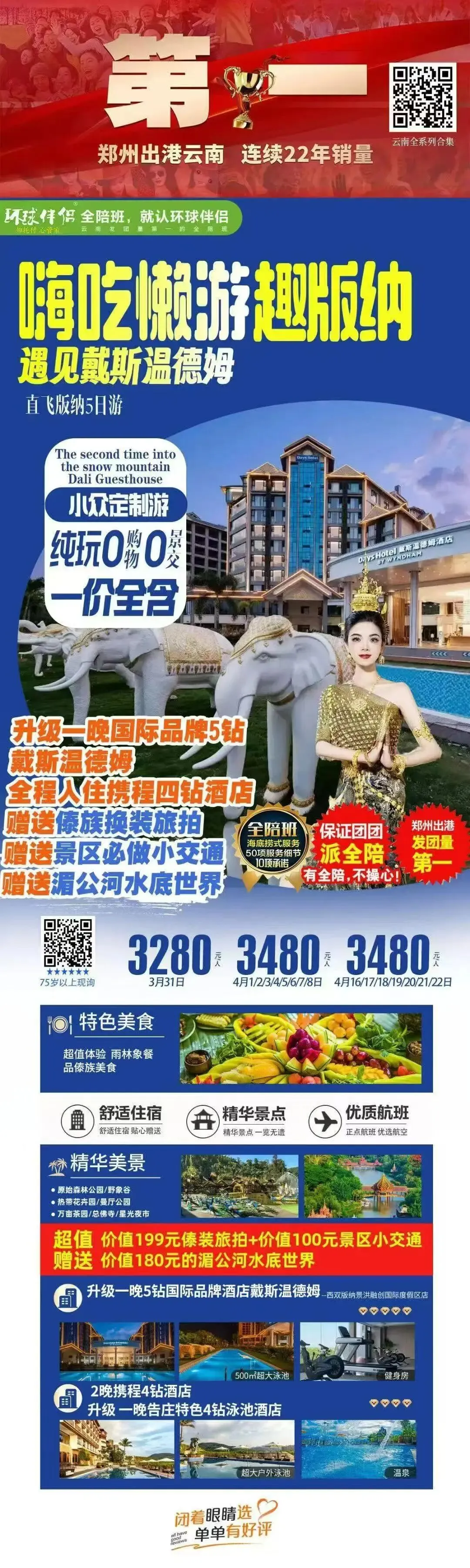[月亮][月亮]升级1晚5钻戴斯温德姆/福朋喜来登,私享500平花园泳池,体验高端与奢华。升级一晚告庄特色4钻泳池酒店; [爱心][爱心]尊享赠送:价值199元傣装旅拍、价值180元湄公河水底世界、价值100元景区小交通