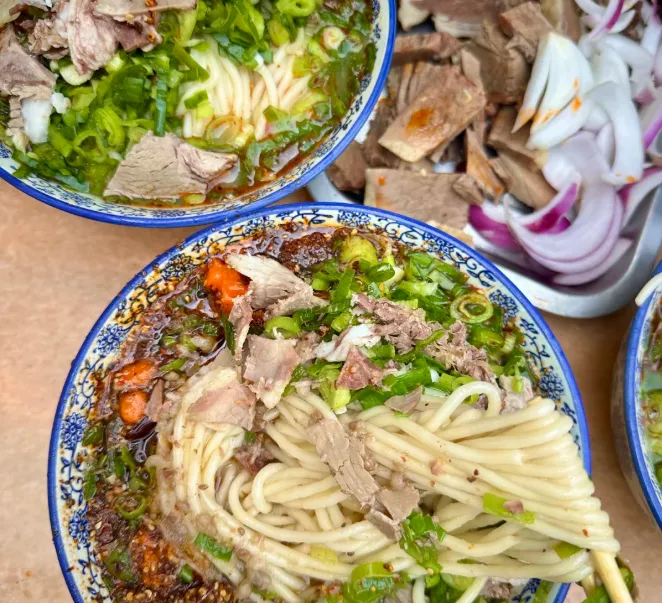 中午适合吃饸饹面,面条筋道,汤底带着骨汤的厚,吸一口,鼻尖都热。也可以试试炒凉粉,锅气很足,外面微焦,里面还嫩,筷子一夹就颤。晚上别吃太赶,土馍、扣碗、炖菜都值得慢慢尝。济源的好吃,不是花样多,而是实在,吃完不空。