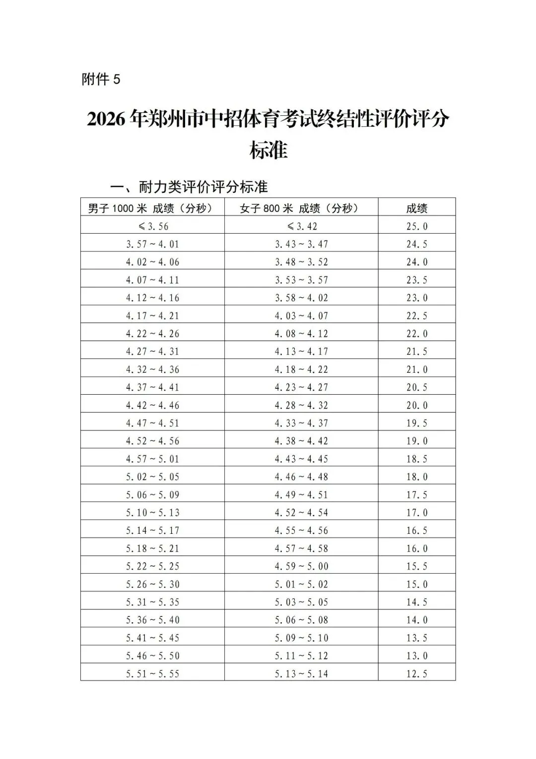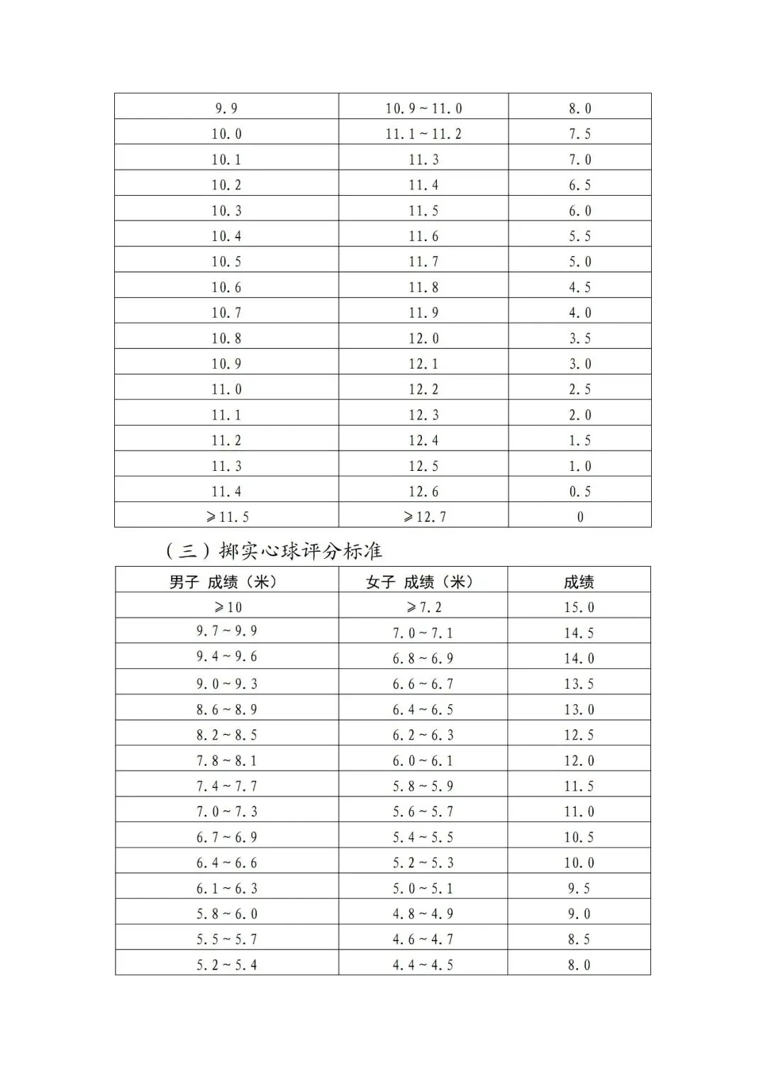 今年的中招体育标准出来后我先看了男子1000米的标准,还是3分56。目前省内洛阳、南阳、安阳、商丘、焦作等都是4分05秒满分,我还想着郑州今年有动静呢,结果没有!那明年再期待一次。不过,我把评分标准和考试须知仔细研究了以后,感觉好了很多。说明:50米、篮球运球、足球运球以秒为单位记录成绩,保留两位小数,成绩取小数点后一位,小数点后第二位按非“0”时则进1进行记录;立定跳远以米为单位,保留两位小数,成绩取小数点后两位;掷实心球以米为单位,保留两位小数,成绩取小数点后一位,小数点后第二位舍去;长跑以分、秒为单位记录成绩,保留两位小数,成绩不计小数,小数点后按非“0”时则进1进行记录。(一)关于体育考试分数计算