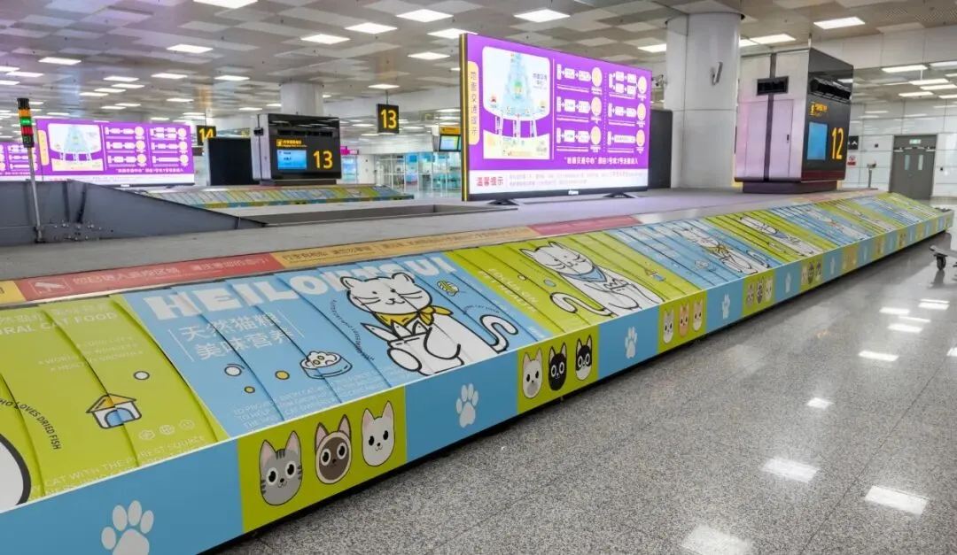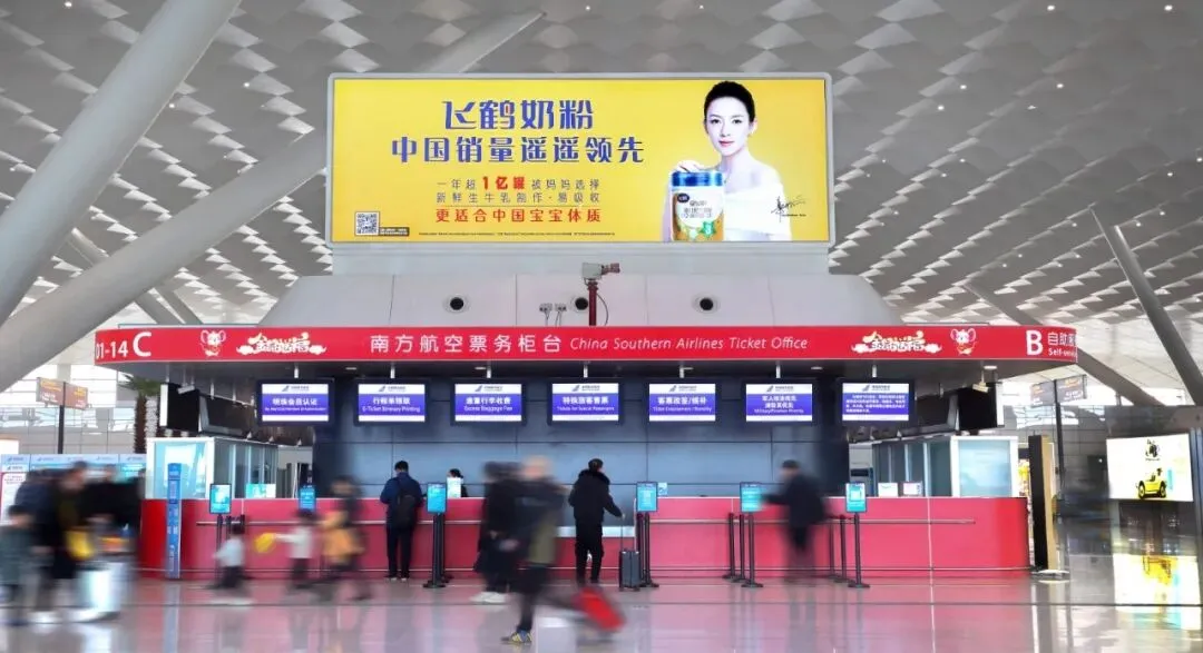 位于国内到达旅客必经处、行李厅墙面,辐射所有国内到达旅客