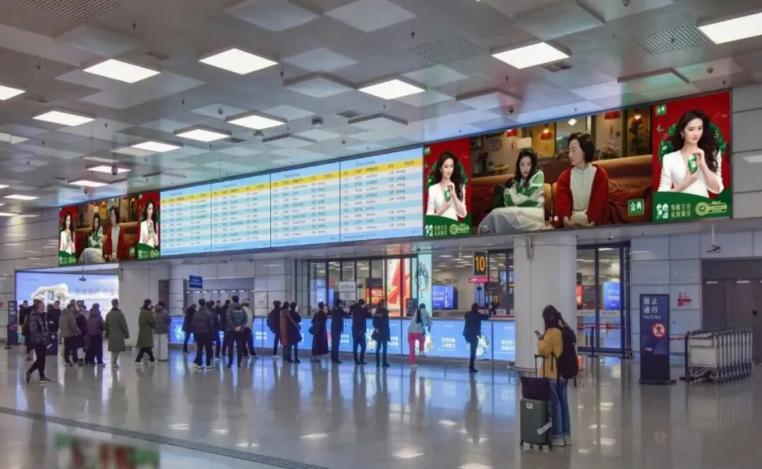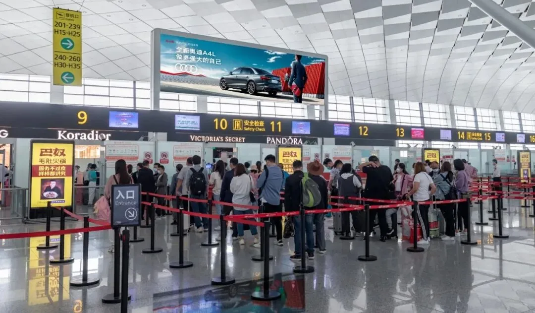 位于国内出发候机旅客汇聚处,覆盖国内出发旅客,不断汇聚的人群可获得更高频次观看