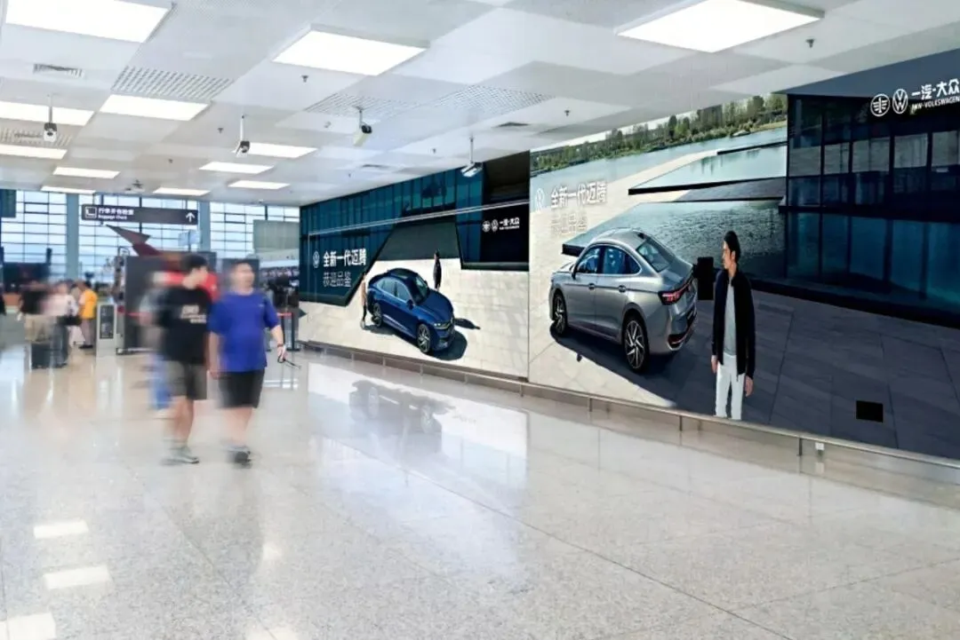 位于到达旅客必经处、到达通廊墙面,高性价比媒体,100%覆盖国内国际到达旅客