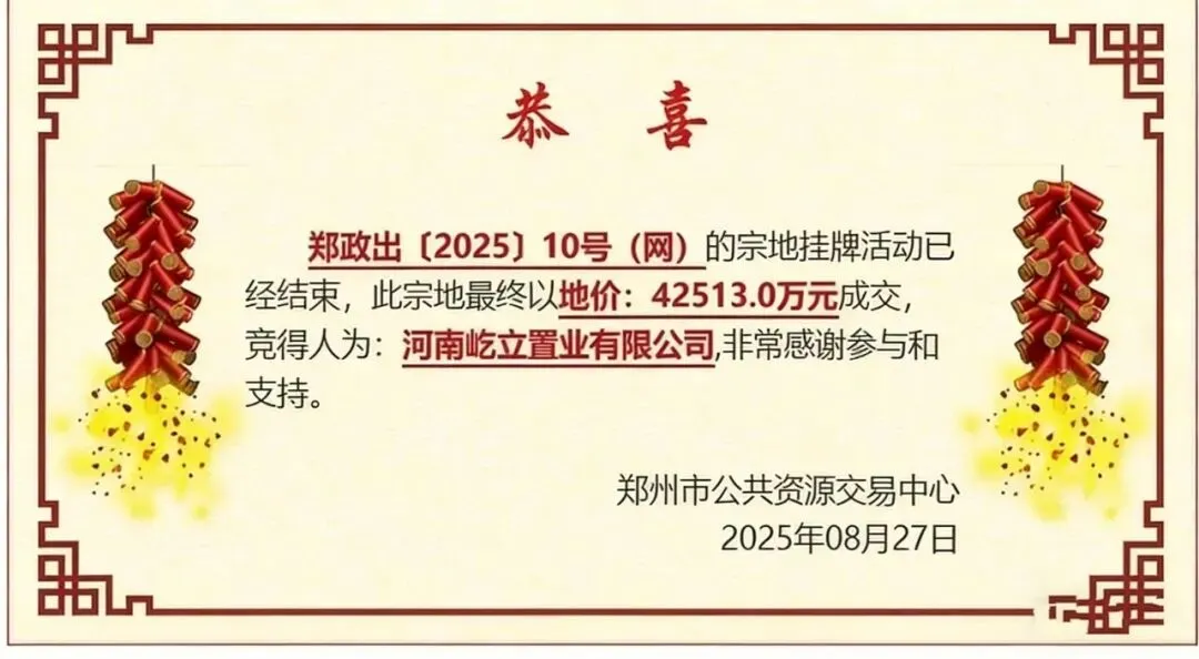拿地信息:2025年8月斩获54.53亩宅地,总价4.25亿,楼面价4678元/㎡,为政府储备地开发