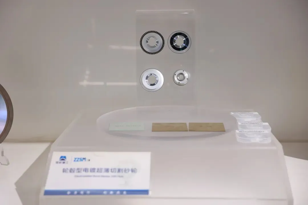 走进三磨所展厅,可“剪裁”大尺寸晶圆的“划片刀”、可磨出镜面光洁度的“硅片减薄砂轮”、可加工万吨巨轮“心脏”的“陶瓷CBN砂轮”等“高、精、尖、专”产品琳琅满目,它们是超硬材料从原料走向精密工具的缩影。