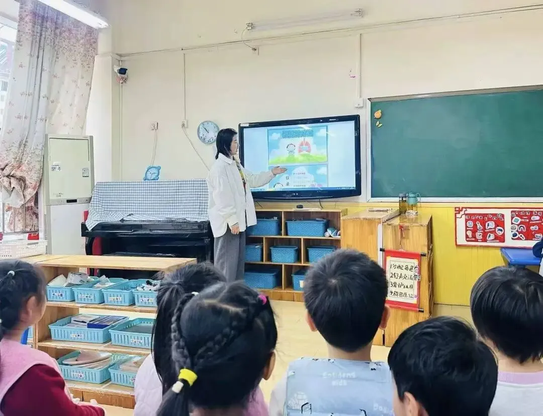 活动中,保健医和老师们根据幼儿年龄特点,采用动画视频、健康儿歌、趣味问答等形式,让健康知识生动易懂,入脑入心。