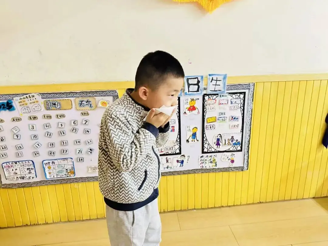 同时,各班还围绕 “正确洗手、咳嗽礼仪、开窗通风、多做运动” 等内容开展健康教育,引导幼儿养成勤洗手、勤通风、不随地吐痰、咳嗽打喷嚏时用纸巾或手肘遮挡的好习惯。孩子们在轻松愉快的氛围中,学习了自我保护的小本领,增强了预防疾病的意识。