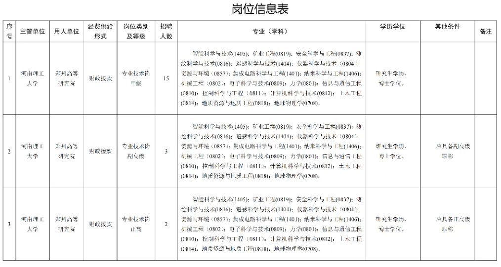 根据《事业单位人事管理条例》《河南省事业单位公开招聘工作规程》(豫人社〔2015〕55号)有关规定,河南理工大学郑州高等研究院2026年拟面向社会公开招聘博士研究生20名。