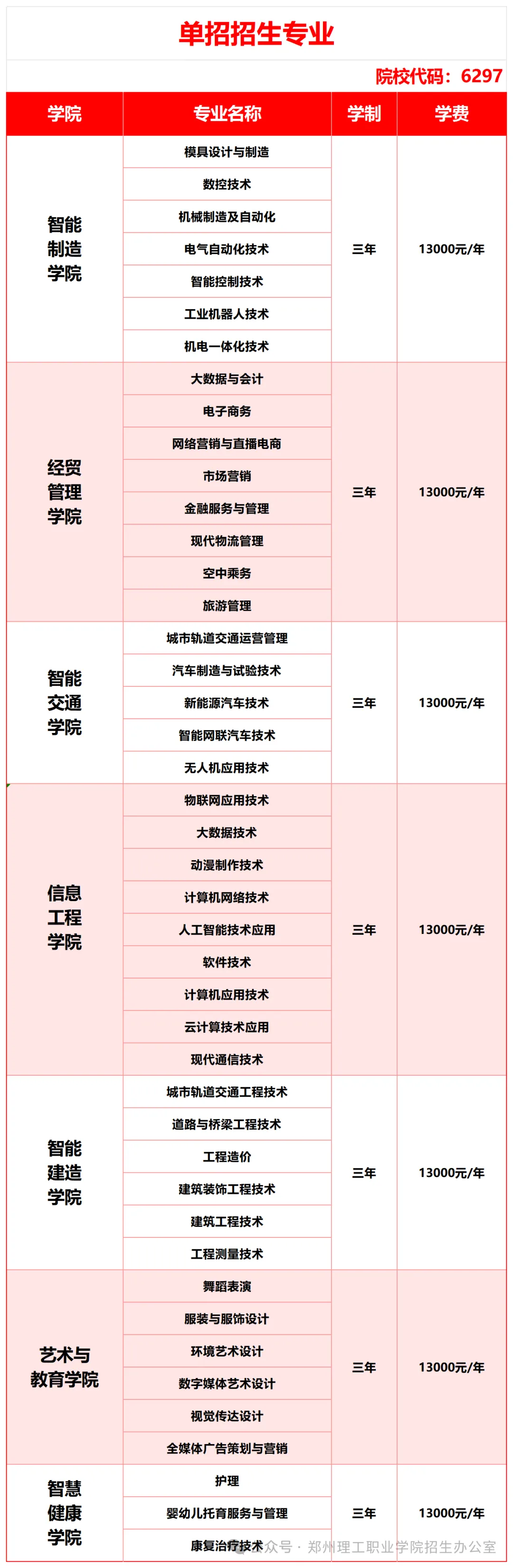 (一)学校依据《郑州市发展和改革委员会关于同意郑州理工职业学院收费标准备案的函》(郑发改收费函〔2022〕6号)所公布的收费标准执行,2026年学费13000元/生/年,住宿费1500元/生/年。