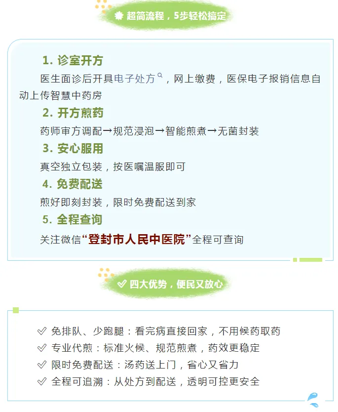 看病开方→取药煎药→限时免费配送到家!