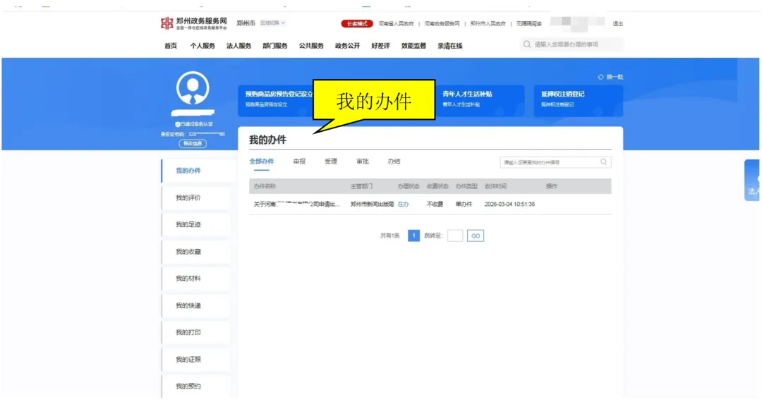 提交成功后,点击企业账户名称,进入“我的办件”页面,即可实时查看办理进度,状态变化一目了然!
