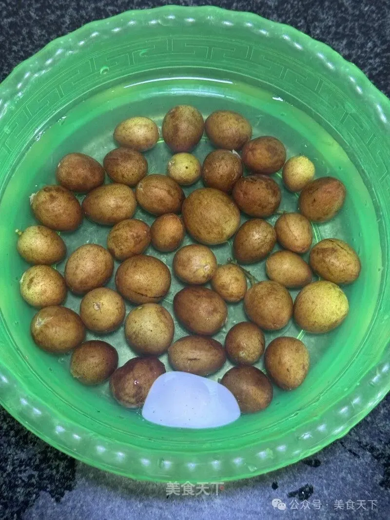 1. 黄皮用盐水浸泡清洗。