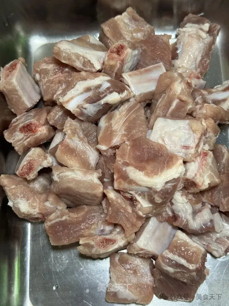 排骨适量、黄皮适量、花生油适量、生抽适量、蚝油适量、玉米淀粉适量。