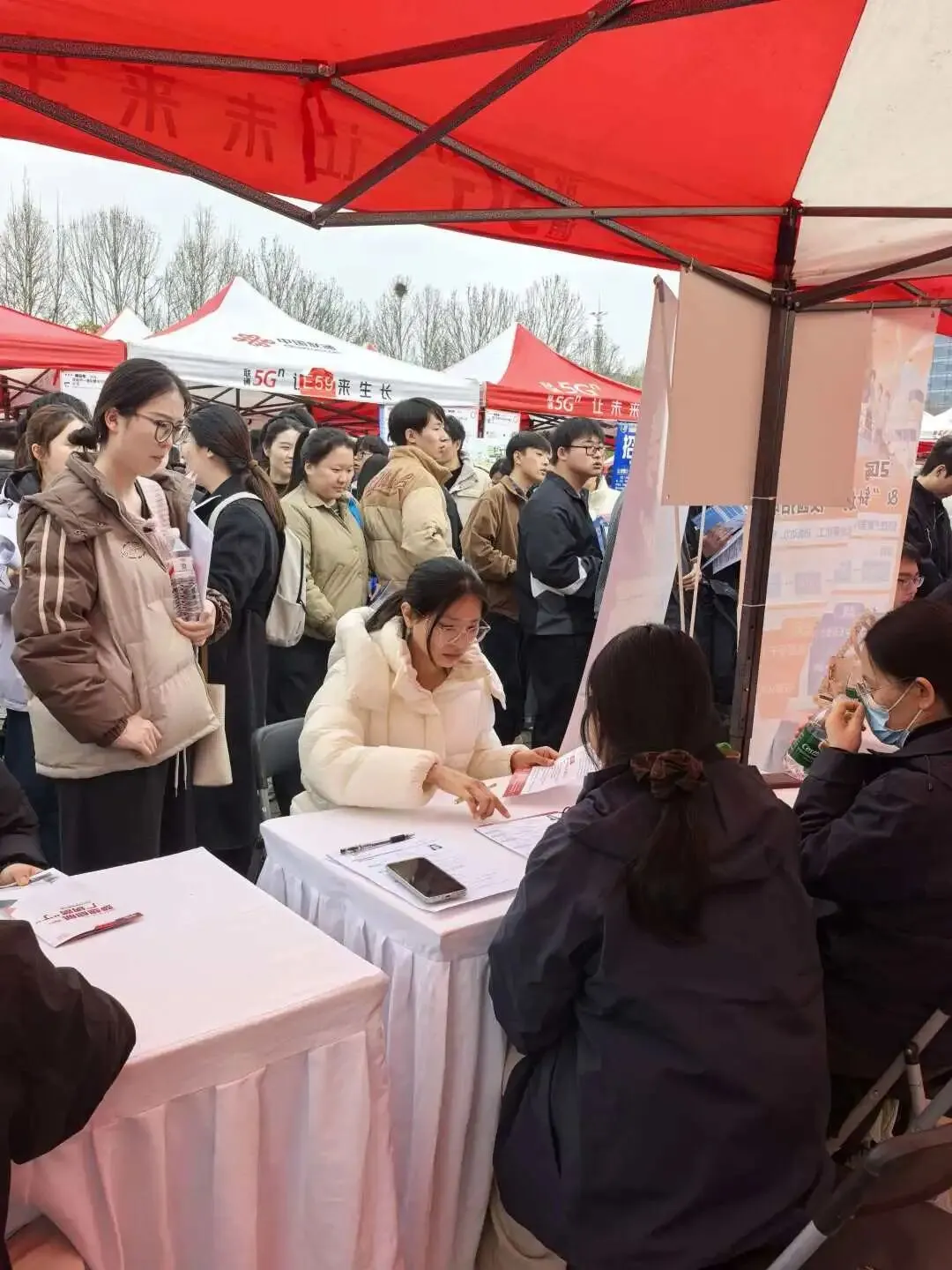 同学们精神饱满,手持精心准备的简历,积极与我们沟通,展现出当代大学生的朝气与素养。