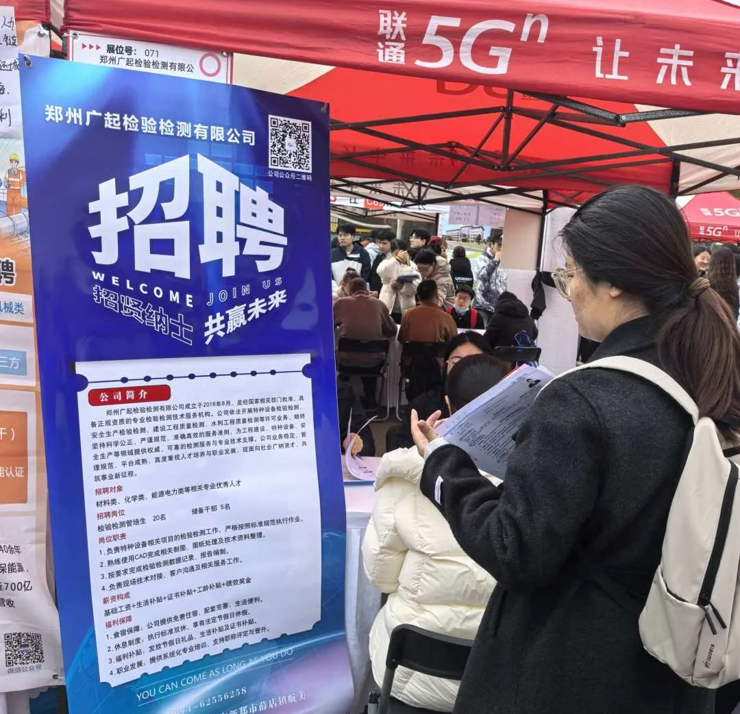 春风送暖,万物勃发。为精准引才,深化校企合作,3月19日,郑州广起检验检测有限公司专场招聘双选会在郑州轻工业大学顺利举行。一天的相遇,一场真诚的交流。我们与来自全校各专业的优秀学子面对面交流,收获颇丰!今天,就让我们一起回顾这场精彩的招聘之旅。