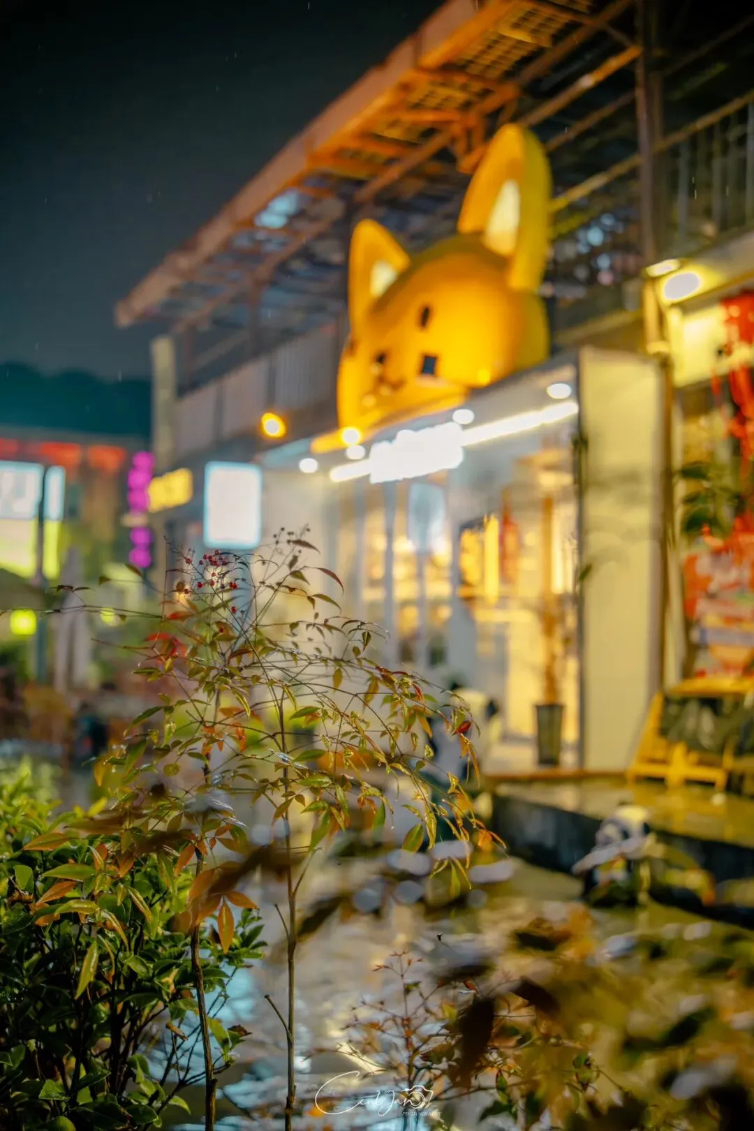 如今,机器声远去,车间变成了店铺,烟囱变成了景观,老厂房被重新点亮,变成了年轻人喜欢的样子。霓虹灯牌亮起,咖啡店、文创店、小酒馆依次开门,雨水把地面洗得发亮,积水成了天然的镜子,把灯牌、屋檐、人影全都倒映出来。我蹲下来,把镜头贴近水面,按下快门的那一刻,画面里一半是现实,一半是虚幻,一半是新潮,一半是沧桑。