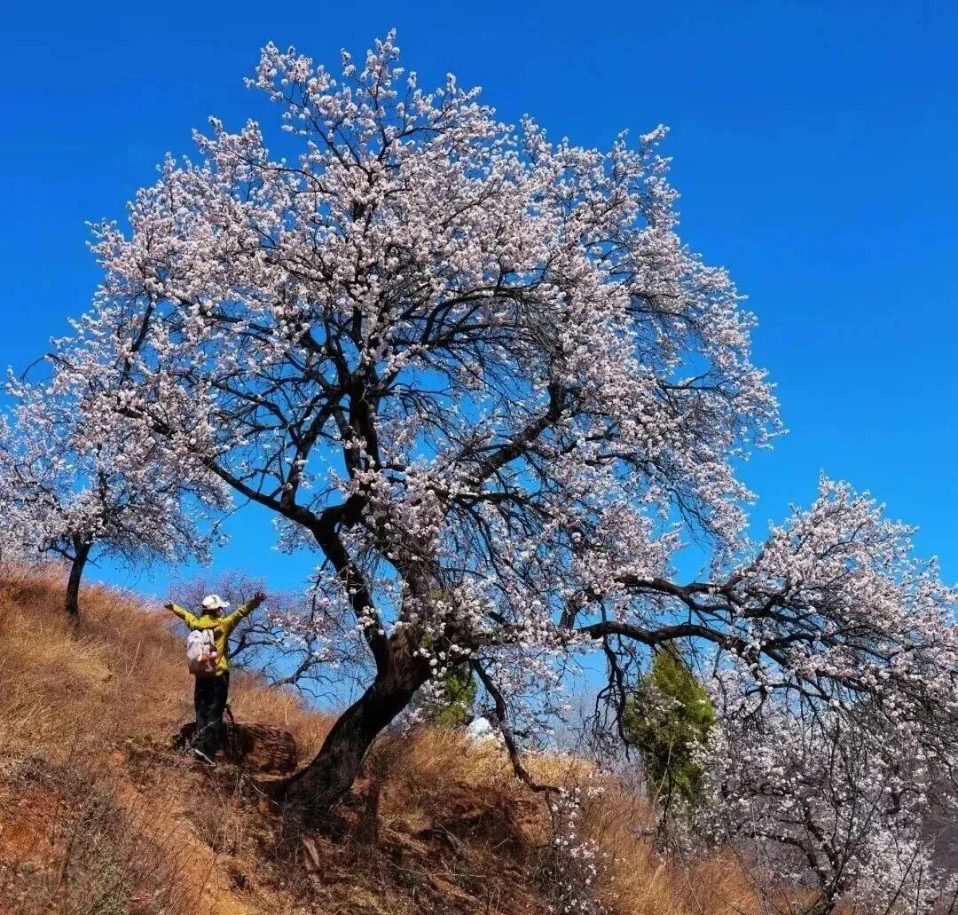 新密伏羲山的春日浪漫,尽数绽放在枝头。伏羲山坐拥6 万亩野生杏林,3 万余棵野生杏树,楼院村正是这片雪海的核心。