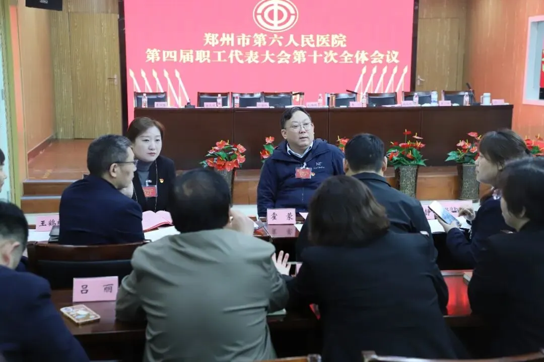 春潮涌动启新程,凝心聚力谋发展。2026年3月24日下午,郑州市第六人民医院第四届十次职工代表大会在8多功能厅召开,党委书记孔维超,党委副书记、院长秦川,副院长付朝红、副院长赵玲玲、纪委书记陈忠煜、副院长李广明、副院长李洪智、总会计师路玓及全体正式代表、列席代表参会,会议由总会计师路玓主持。