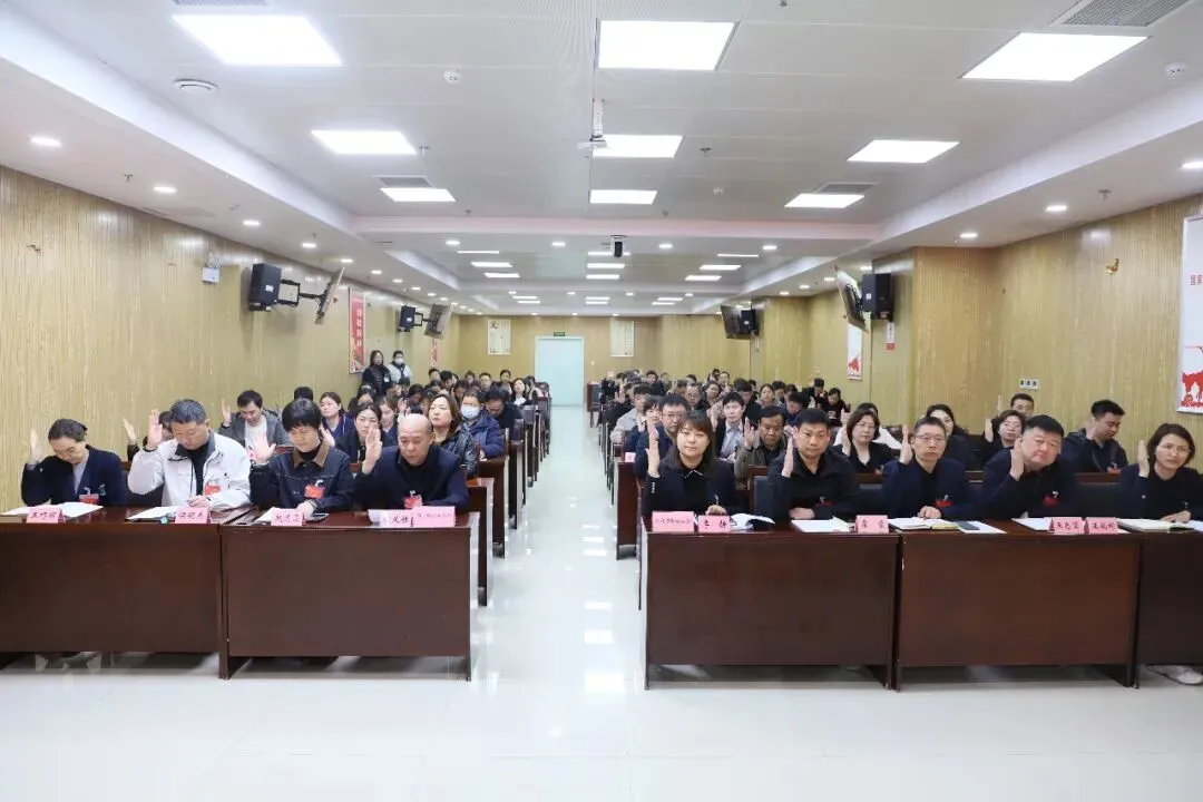 大会在庄严的国歌声中开幕。总会计师路玓作2025年工会工作报告,回顾了工会在职工关爱、文化活动建设等方面的成效,明确2026年工作方向;副院长李洪智作2025年工会经费审查报告;副院长李广明作2025年预算执行及2026年预算情况报告;纪委书记陈忠煜作年度审计工作报告;副院长赵玲玲汇报医学装备配置维保、呼吸楼感染负压病房改造项目规划;副院长付朝红汇报2026年信息化工程建设、DSA手术区域改造项目。