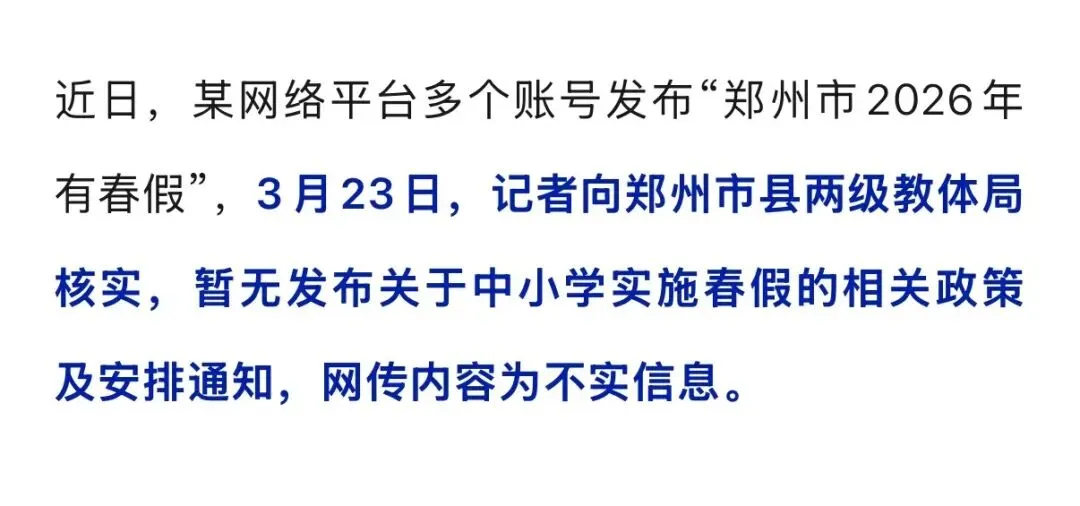 >郑州中小学将放3天春假?回应来了