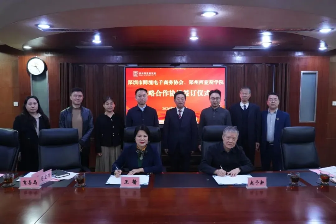 2026年3月23日,深圳市跨境电子商务协会(以下简称 “深跨协”)与郑州西亚斯学院合作座谈会在郑州西亚斯学院顺利召开。新郑市委书记马宏伟、副市长张志宏莅临现场见证,全球跨境电商协会执行主席(简称 “全跨协”)、深跨协会长王馨携协会团队出席,郑州西亚斯学院副校长赵予新携团队及传神语联网、领拓国际集团等企业代表共同参会,多方凝聚共识、共商发展,携手推动跨境电商产教融合走深走实。座谈会上,政协校三方围绕郑州跨境电商产业发展现状、人才培养核心痛点及校企协同创新路径展开深入交流,就构建“行业引领、院校支撑、企业参与”的人才培养体系达成高度共识。各方一致认为,破解当前跨境电商人才供给与产业需求脱节难题,必须坚持产教融合、实操导向,充分发挥行业协会资源整合优势、院校人才培养主阵地作用及企业实践场景优势,形成协同育人合力,为新郑市乃至郑州市跨境电商产业高质量发展筑牢人才根基。在新郑市领导与全体嘉宾的共同见证下,全球跨境电商协会执行主席、深跨协会长王馨与郑州西亚斯学院副校长赵予新共同签署跨境电商战略合作协议,郑州西亚斯学院同步为王馨会长颁发“经济与管理学院数字经济专业硕士研究生导师”聘书。此次签约与聘任,是双方深化产学研协同合作、推动跨境电商高层次人才培养的重要举措,既为校企协三方后续合作奠定坚实基础,更将为郑州西亚斯学院数字经济学科建设注入行业前沿资源与实践经验,进一步打通学术研究与产业应用的壁垒。政企校三方还围绕郑州跨境电商产业发展现状、人才培养核心痛点及校企协同创新路径展开深入交流,就构建“行业引领、院校支撑、企业参与”的人才培养体系达成高度共识。各方一致认为,破解当前跨境电商人才供给与产业需求脱节难题,必须坚持产教融合、实操导向,充分发挥行业协会资源整合优势、院校人才培养主阵地作用及企业实践场景优势,形成协同育人合力。目前,郑州软件职业技术学院跨境电商专业学生已启动实操培训,郑州西亚斯学院相关专业学生同步推进实训工作,校企协同育人工作已进入实质落地阶段。下一步,各方将围绕人才培养、专业建设、产业赋能等重点方向,稳步推进各项合作事项落地见效,共同探索可复制、可推广的产教融合新模式。此次战略合作是地方政府、行业协会、院校与企业四方联动的生动实践,为郑州跨境电商产业发展注入了新动能。未来,深跨协将在王馨会长带领下,持续发挥行业桥梁纽带作用,携手郑州西亚斯学院及各方合作伙伴,打造跨境电商人才培养与产业发展深度融合的新样板,为全国跨境电商产业高质量发展贡献力量。
