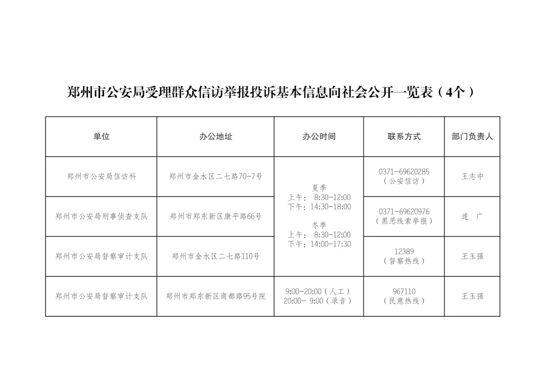 >郑州市公安局受理群众信访举报投诉基本信息向社会公开一览表(2026)